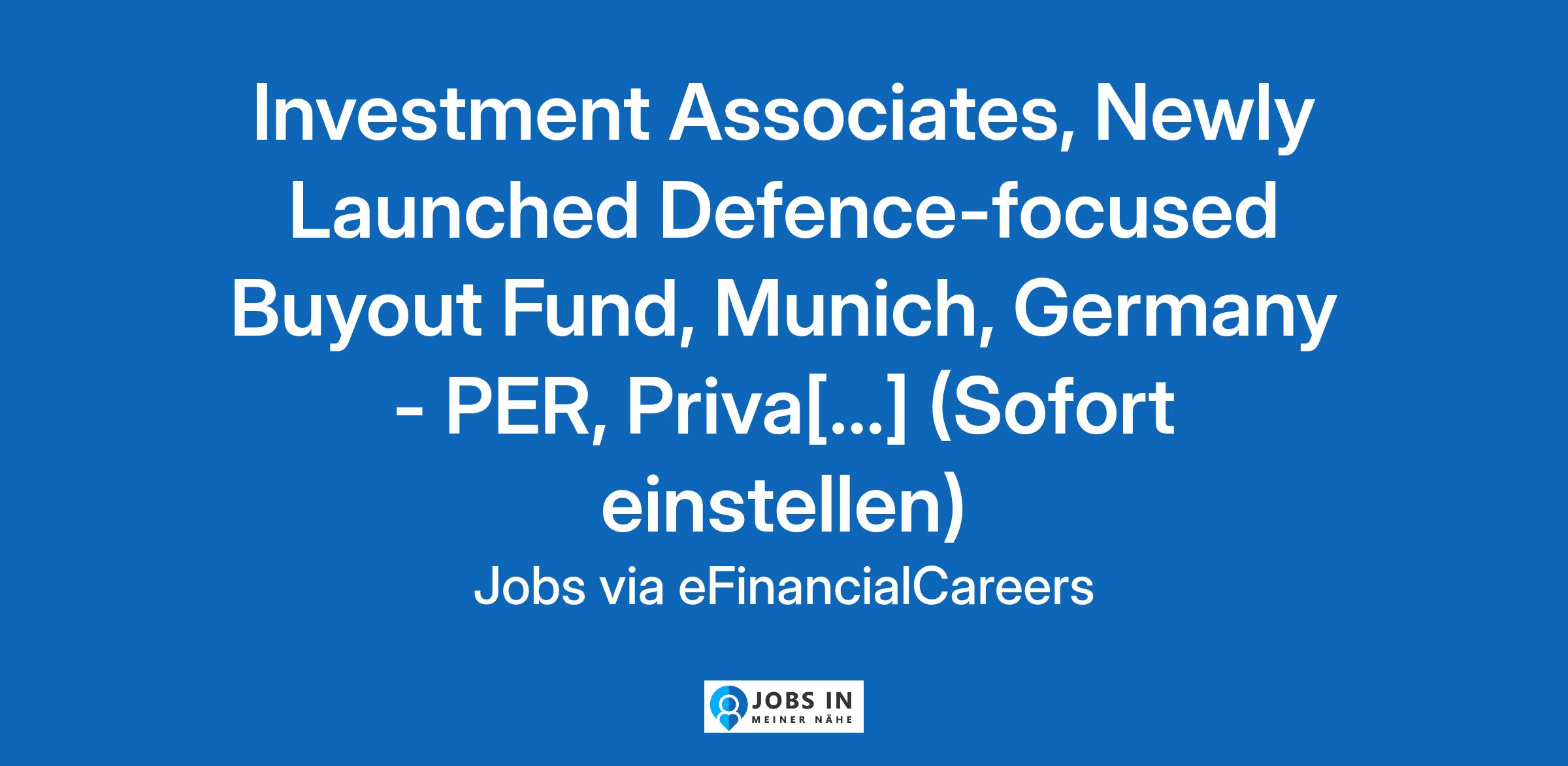 Investment Associates, Newly Launched Defence-focused Buyout Fund, Munich, Germany - PER, Private Equity Recruitment