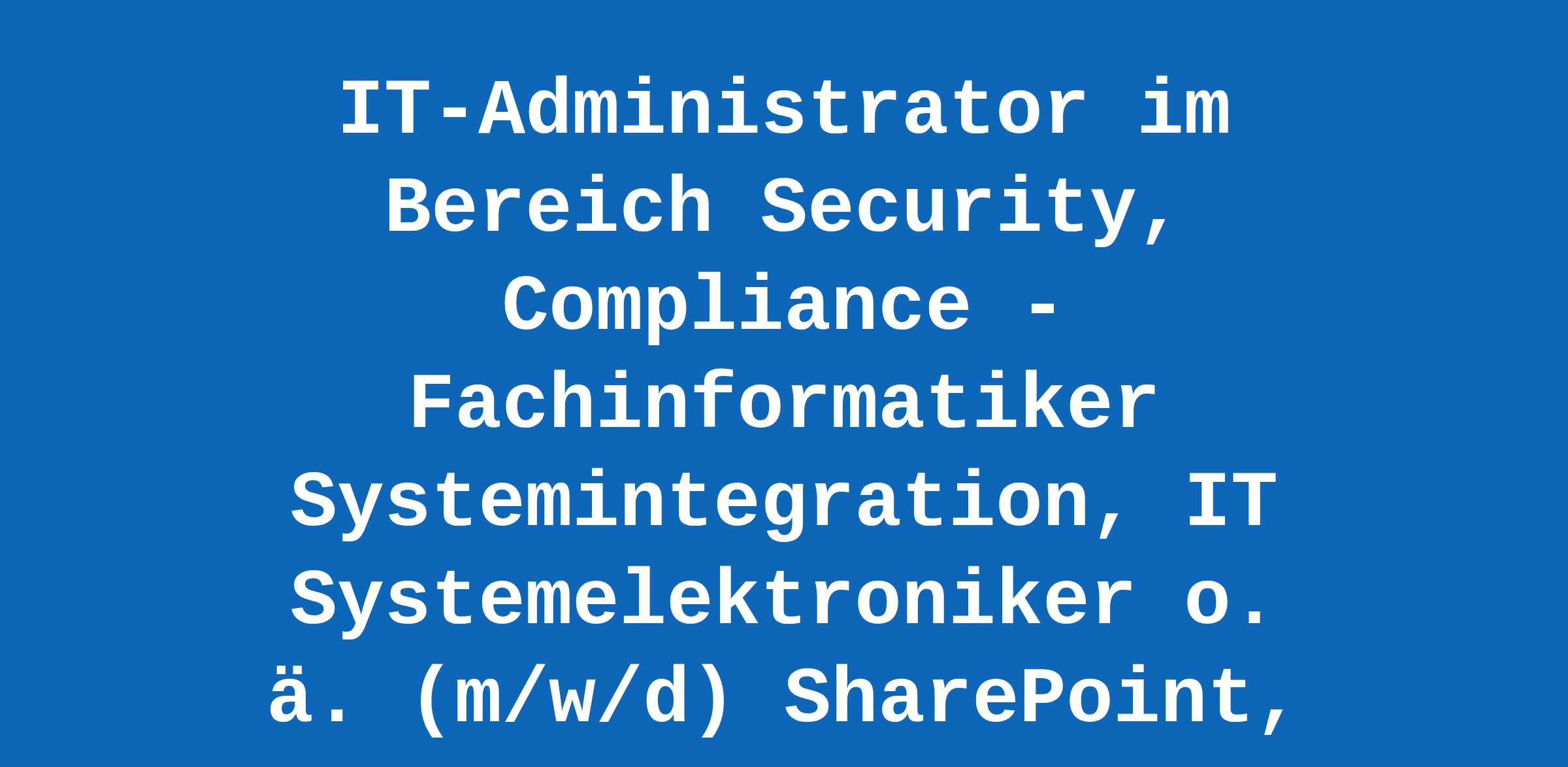 IT-Administrator im Bereich Security, Compliance - Fachinformatiker Systemintegration, IT Systemelektroniker o. ä. (m/w/d) SharePoint, Azure
