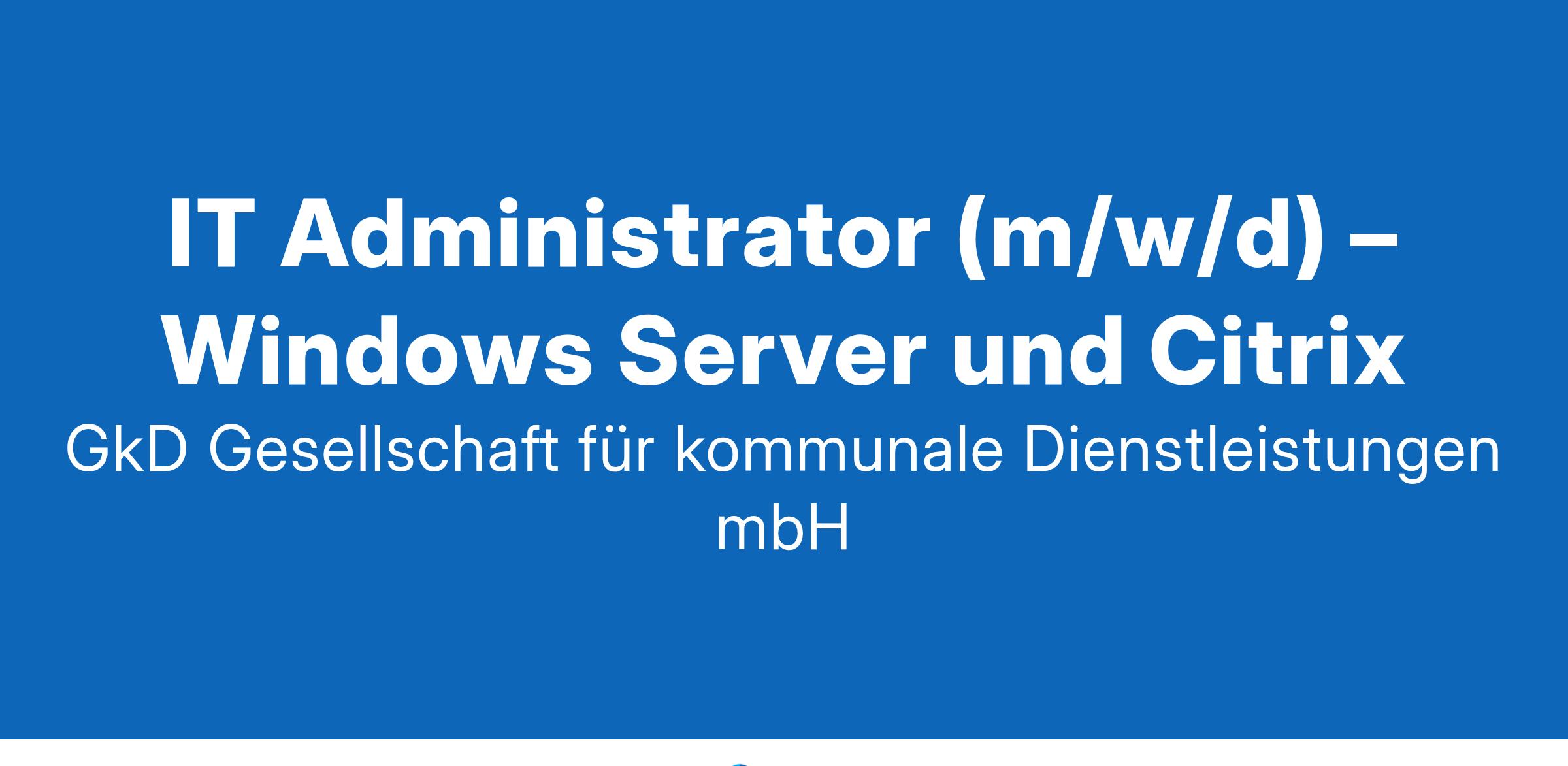 Wir gestalten EnergieZukunft – und innovative Branchensoftware Willkommen im Team der GKD - Gesellschaft für kommunale Dienstleistungen mbH. In unserer Rolle als treibende Kraft des digitalen Wandels innerhalb der rhenag-Gruppe verfolgen wir mit Entschlossenheit die Entwicklung zuverlässiger und wegweisender Lösungen. Wir stehen ein für zukunftssichere Arbeitsplätze, sinnstiftende Tätigkeiten im Dienst der Gesellschaft und ein tolles Betriebsklima – für Menschen, die „einfach einen guten Job machen wollen“. Du hast Lust daran mitzuwirken? Dann suchen wir dich zur Verstärkung unseres Teams als IT Administrator (m/w/d) – Windows Server und Citrix Vollzeit | Unbefristet | 50968 Köln Hier zählt deine Energie Tauche ein in eine fesselnde Herausforderung in einem dynamischen Umfeld. Bei uns erhältst du nicht nur die Gelegenheit, deine fachlichen Fähigkeiten weiterzuentwickeln, sondern du bist auch maßgeblich an der Gestaltung und dem Wachstum unserer innovativen Systemlandschaft beteiligt. Deiner Kreativität sind keinerlei Grenzen gesetzt, wenn es darum geht, Prozesse auf neue und innovative Weise zu durchdenken. Das erwartet dich Als IT-Administrator in unserem Team übernimmst Du eine zentrale Rolle bei der Administration und Optimierung unserer Windows- und Citrix-Infrastruktur. Deine Aufgaben umfassen:Verwaltung und Optimierung: Du bist verantwortlich für die Verwaltung, Analyse, Planung und Weiterentwicklung unserer Windows-Server und Citrix-Umgebung.
