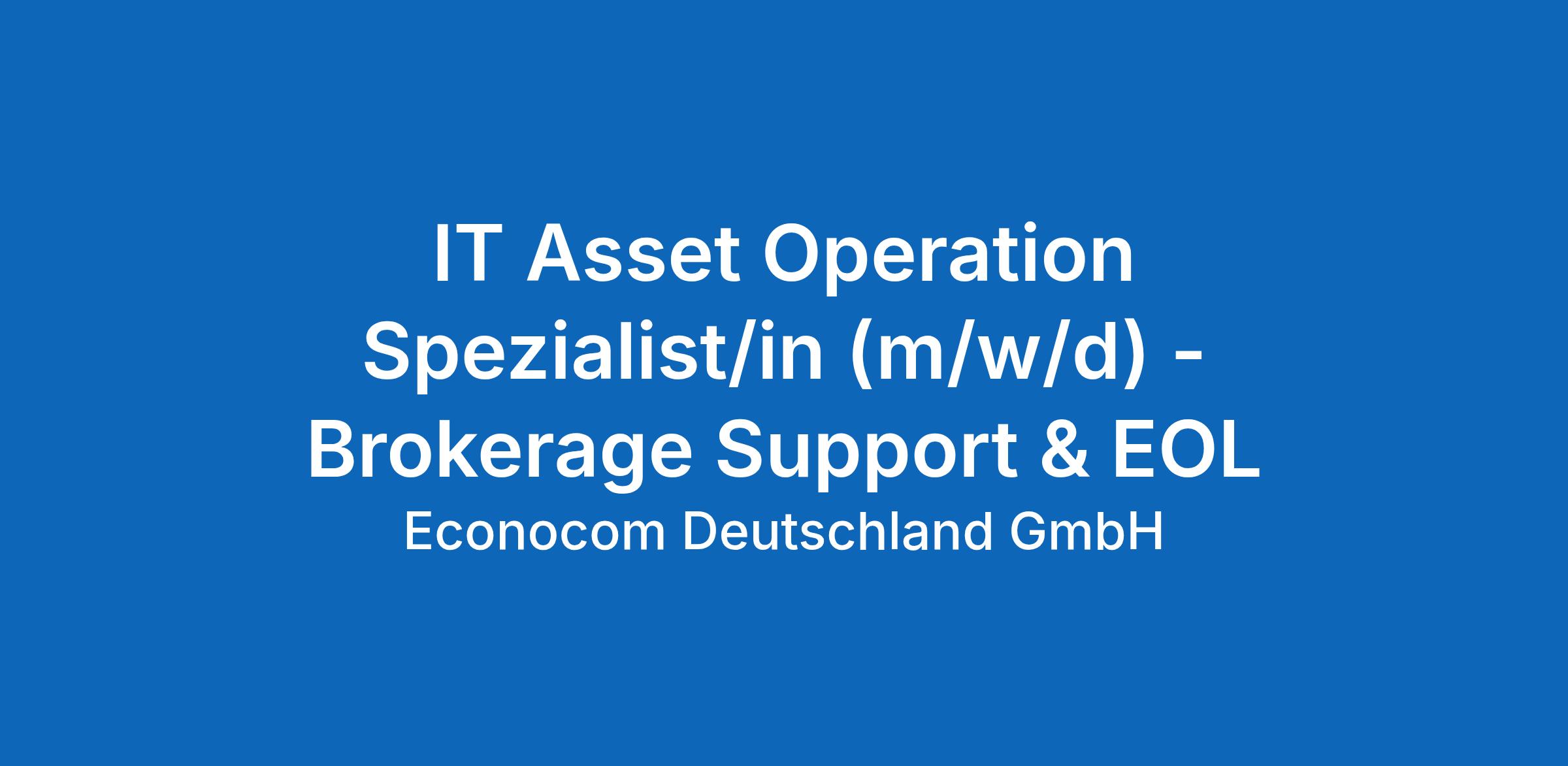 IT Asset Operation Spezialist/in (m/w/d) - Brokerage Support & EOL