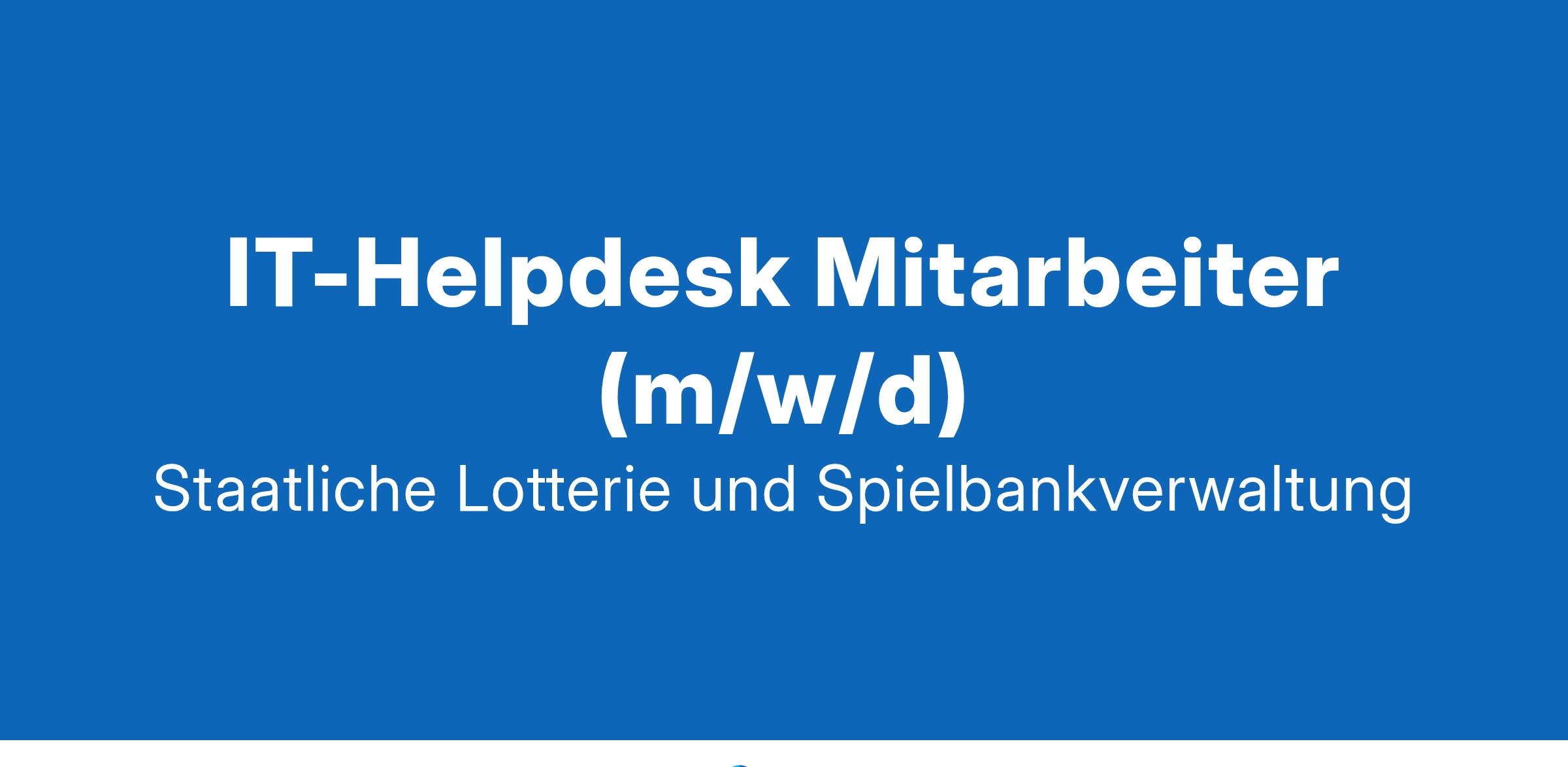 Zur Verstärkung unseres Teams in der Abteilung II „IT und Spielbetrieb“ suchen wir für den Bereich „Bürokommunikation“ zum nächstmöglichen Zeitpunkt eine oder einen: IT-Helpdesk Mitarbeiter (m/w/d) Die Staatliche Lotterie- und Spielbankverwaltung ist ein Wirtschaftsunternehmen des Freistaats Bayern. Mit rund 1.000 Mitarbeiterinnen und Mitarbeitern bei LOTTO Bayern und den Bayerischen Spielbanken sorgen wir für verantwortungsbewusstes Glücksspiel mit einem technisch sicheren Spielablauf für unsere Kundinnen und Kunden. Gut zu wissen Wir sind mehrfach als Top-Company ausgezeichnet und tragen den Award 2025 Unser Hauptsitz in München befindet sich mit rund 370 Mitarbeiterinnen und Mitarbeitern in zentraler Lage direkt oberhalb der Theresienwiese Die Erträge der Staatlichen Lotterie- und Spielbankverwaltung kommen über den bayerischen Staatshaushalt vielfältigen gemeinnützigen Bereichen im Freistaat zugute - wie Sport, Kultur, Denkmalpflege und sonstigen öffentlichen Bereichen Ihre Rolle als Glücksbringer Bereitstellung von IT-Support im 1st-Level per Telefon, E-Mail oder über ein Ticketsystem Unterstützung von Mitarbeitern bei der Lösung von IT-Problemen und Gewährleistung der IT-Einsatzbereitschaft Durchführung von PC-Arbeitsplatzumzügen, inklusive Aufbau, Konfiguration und Anschließen von Peripheriegeräten Pflege und Bearbeitung von Supportanfragen im Ticketsystem, einschließlich Erfassen, Bearbeiten und Schließen von Tickets Eigenverantwortliche Problemanalyse und -lösung vor Ort, ggf. Weiterleitung an nachgelagerte Support-Ebenen Unterstützung bei der Konfiguration und Nutzung von Konferenzräumen Ihr Profil Abgeschlossene Ausbildung zum/zur Fachinformatiker/in (m/w/d) Systemintegration oder IT-Systemelektroniker/in mit entsprechender Berufserfahrung im IT-Support oder Helpdesk-Bereich, insbesondere im First-Level-Support Umfangreiche IT-Kenntnisse im Anwendungsbereich MS Office (v. a. MS Excel, Word, Outlook) Grundlagenwissen in PC-Hardware und Software sowie der Anbindung von Peripheriegeräten Grundlegende Kenntnisse in Microsoft-Betriebssystemen Sehr gute Deutschkenntnisse (Niveaustufe C1) und gute Englischkenntnisse in Wort und Schrift Erfahrung im Umgang mit Ticketsystemen Fähigkeit zur selbstständigen Problemlösung und Arbeitsorganisation Gute kommunikative Fähigkeiten und ein serviceorientiertes Auftreten Unser Angebot Moderner Arbeitsplatz im öffentlichen Dienst mit zentraler Lage in München Gleitende Arbeitszeit und Möglichkeit zur Arbeit im Homeoffice Entgeltgruppe E 8 - 9b TV-L (je nach Qualifikation), betriebliche Altersversorgung, vermögenswirksame Leistungen, Jahressonderzahlung u. v. m. Vielfältige Fort- und Weiterbildungsangebote Betriebliches Gesundheitsmanagement (mit diversen Kursangeboten) Angenehmes Betriebsklima und eigene Betriebsgastronomie Kontakt Wir freuen uns auf Ihre Bewerbung über das Portal www.interamt.de unter der Stellenangebot-ID 1228009 bis 17.02.2025. Für fachliche Rückfragen steht Ihnen Herr Andreas Graf unter 089/28655-213, für personalrechtliche Fragen Frau Jutta Pollina-Hartwig unter 089/28655-208 telefonisch zur Verfügung. Schwerbehinderte Bewerber werden bei ansonsten im Wesentlichen gleicher Eignung, Befähigung und Leistung bevorzugt berücksichtigt. Unsere Datenschutzhinweise finden Sie hier: glücksbringer-bayern.de/datenschutz www.lotto-bayern.de