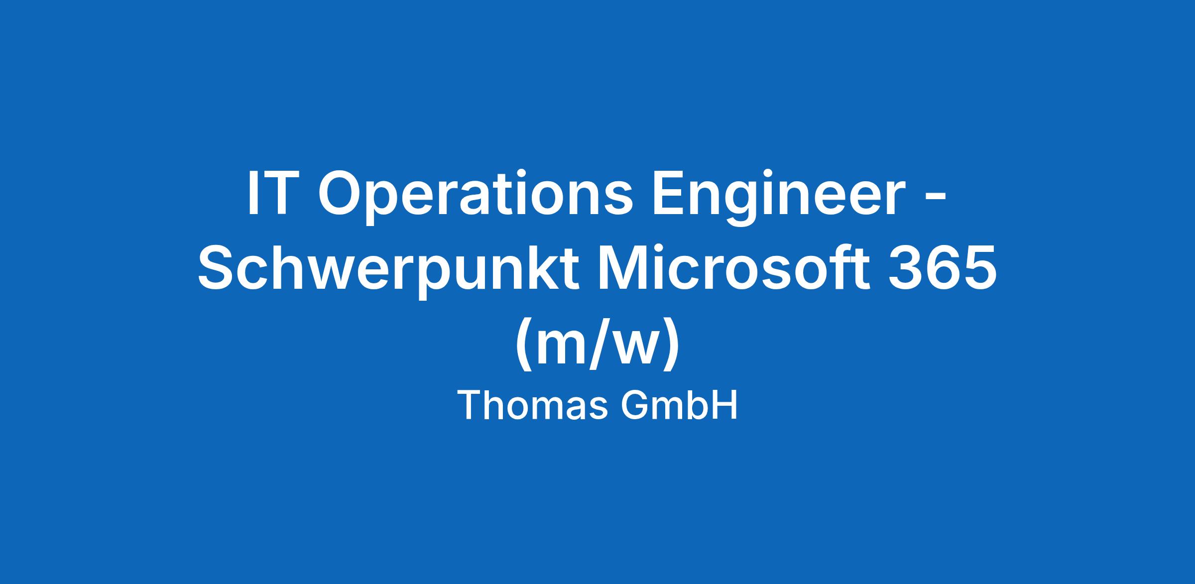 IT Operations Engineer - Schwerpunkt Microsoft 365 (m/w)