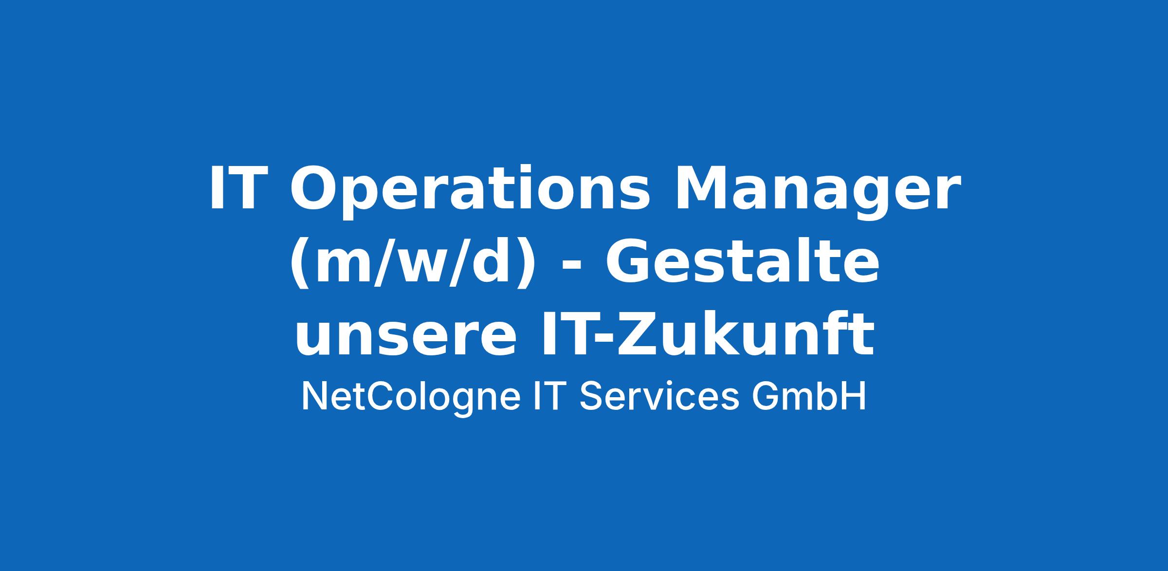 Du hast eine Leidenschaft für reibungslose IT-Prozesse, moderne Infrastrukturen und weißt, wie man ein Technik-Team zu Höchstleistungen motiviert? Als IT Operations Manager (m/w/d) am Standort Köln bist Du der strategische Kopf unseres „Platform Operations Center“-Teams. Du verantwortest nicht nur den Betrieb, sondern entwickelst unser Portfolio aktiv weiter und bist ein geschätzter Sparringspartner für unsere B2B-Kunden und unseren Vertrieb.