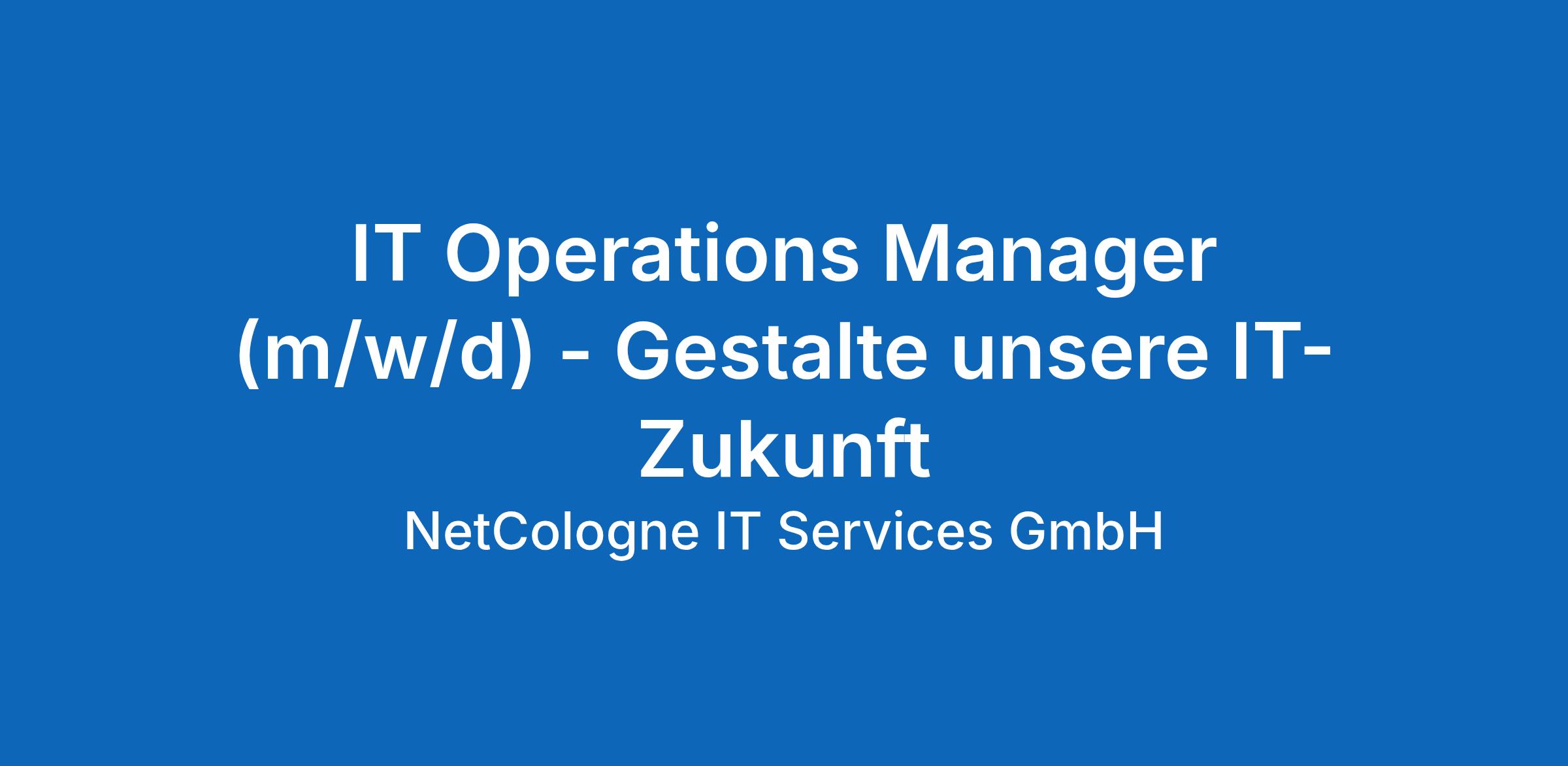 Du hast eine Leidenschaft für reibungslose IT-Prozesse, moderne Infrastrukturen und weißt, wie man ein Technik-Team zu Höchstleistungen motiviert? Als IT Operations Manager (m/w/d) am Standort Köln bist Du der strategische Kopf unseres „Platform Operations Center“-Teams. Du verantwortest nicht nur den Betrieb, sondern entwickelst unser Portfolio aktiv weiter und bist ein geschätzter Sparringspartner für unsere B2B-Kunden und unseren Vertrieb.