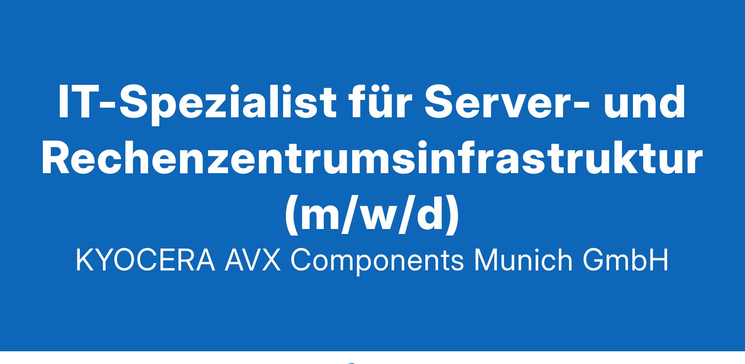 Für die KYOCERA AVX Components (Munich) GmbH suchen wir an unserem Standort in Werne einen IT-Spezialist für Server- und Rechenzentrumsinfrastruktur (m/w/d) für unser internationales Team.