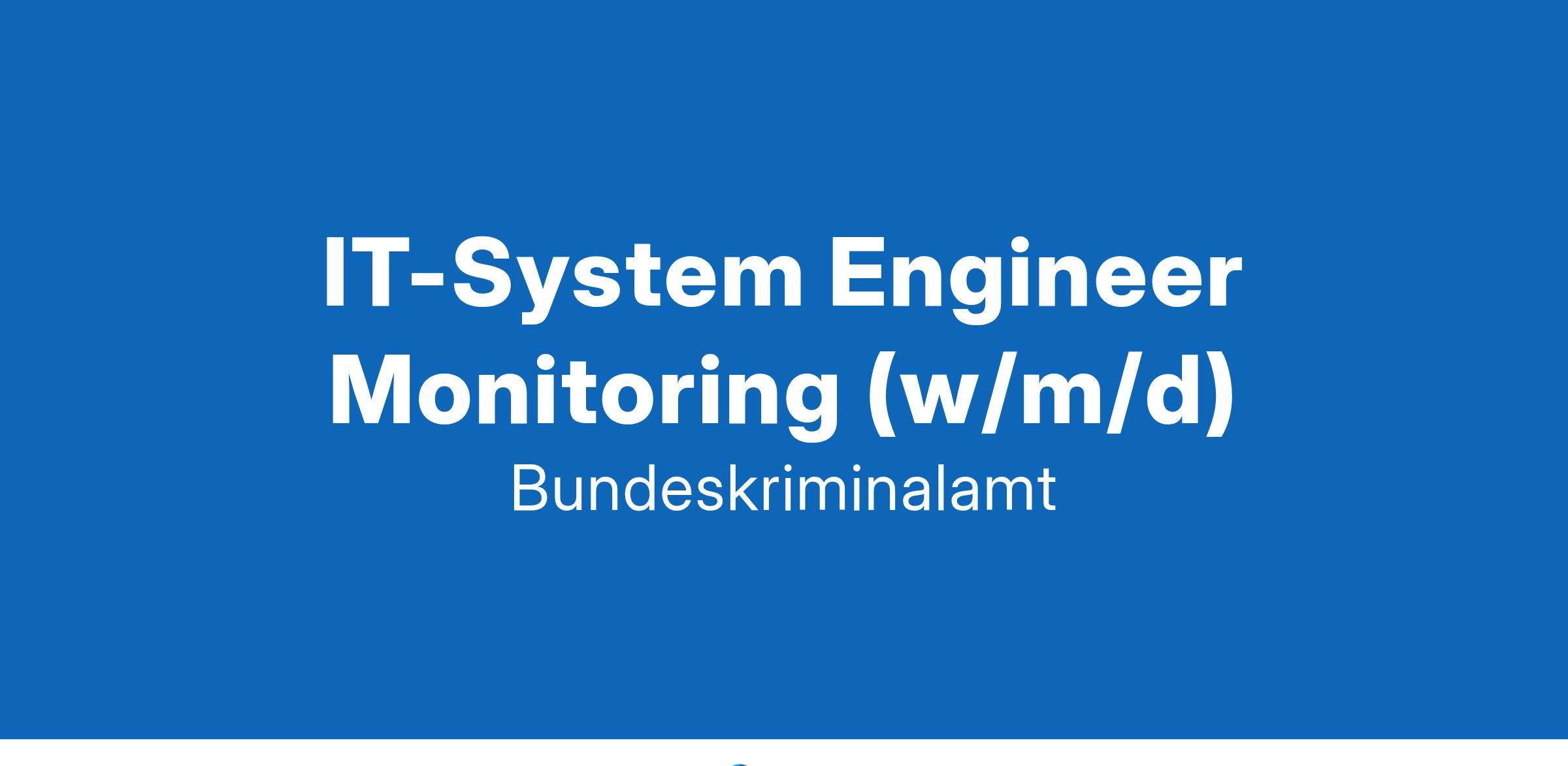 Unterstütze uns beim IT-System Engineer Monitoring (w/m/d) in der Abteilung Digitale Services und Innovation des Bundeskriminalamtes. Bei uns kannst Du bei der Erledigung der polizeilichen und administrativen Arbeit ein entscheidender Faktor sein. Durch den Einsatz modernster Technologien gewährleisten wir rund um die Uhr die Verfügbarkeit und Integrität der informationstechnischen Einrichtungen. Hier kannst Du in Kooperation mit nationalen und internationalen Sicherheitsbehörden sichere Infrastruktur gestalten.