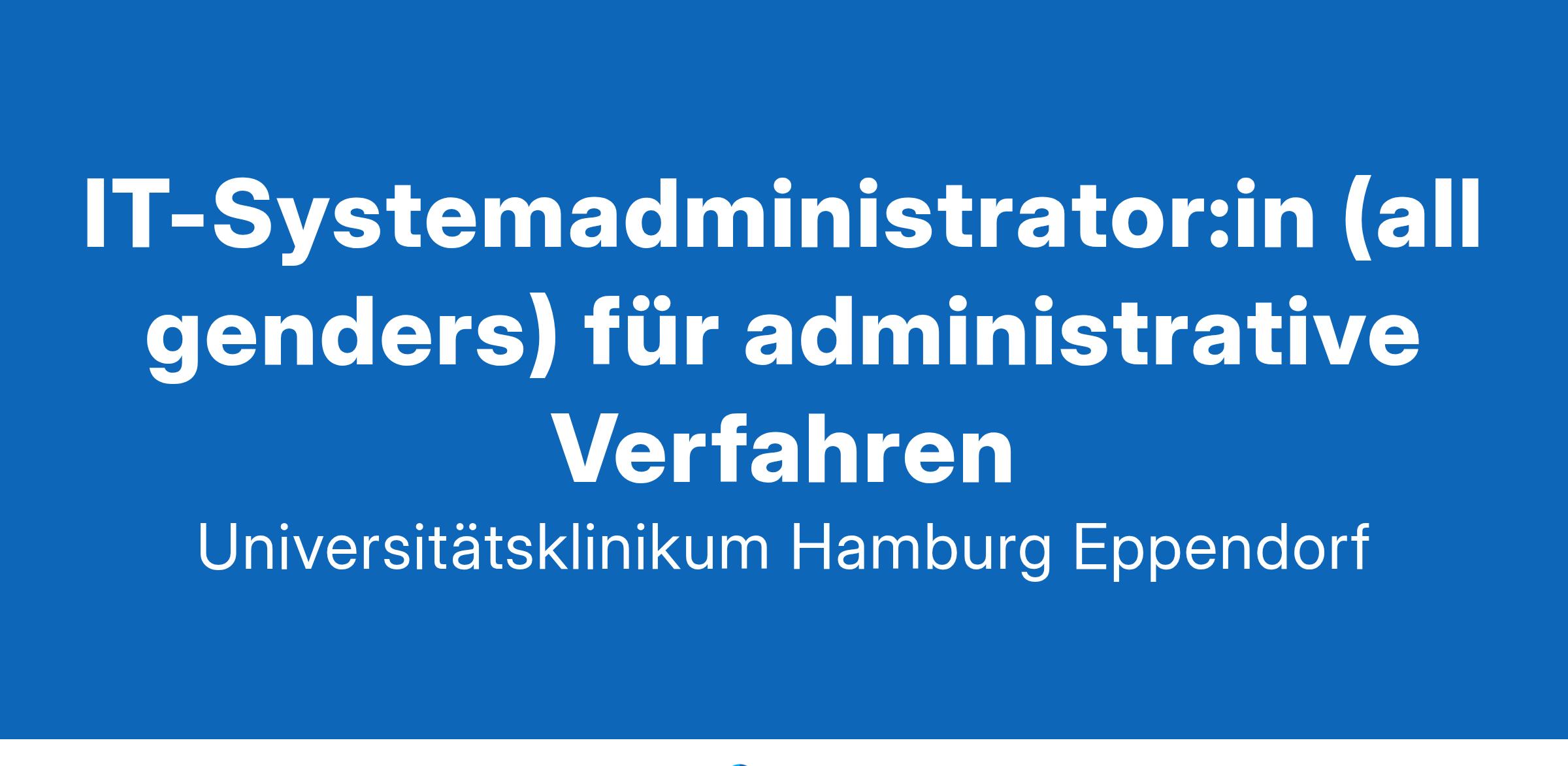 IT-Systemadministrator:in (all genders) für administrative VerfahrenVollzeit/Teilzeit | Unbefristet | Arbeitsort: Hamburg EppendorfUKE_Zentrale DiensteGemeinsam besser. Fürs Leben.Wir sind das Universitätsklinikum Hamburg-Eppendorf (UKE) - und stehen für exzellente Kompetenz in Forschung, Lehre und der vollumfänglichen Gesundheitsversorgung in unseren Kliniken. Unsere rund 15.300 Mitarbeiter:innen streben jeden Tag aufs Neue danach, mit ihrem Beitrag die Welt ein bisschen gesünder zu machen.