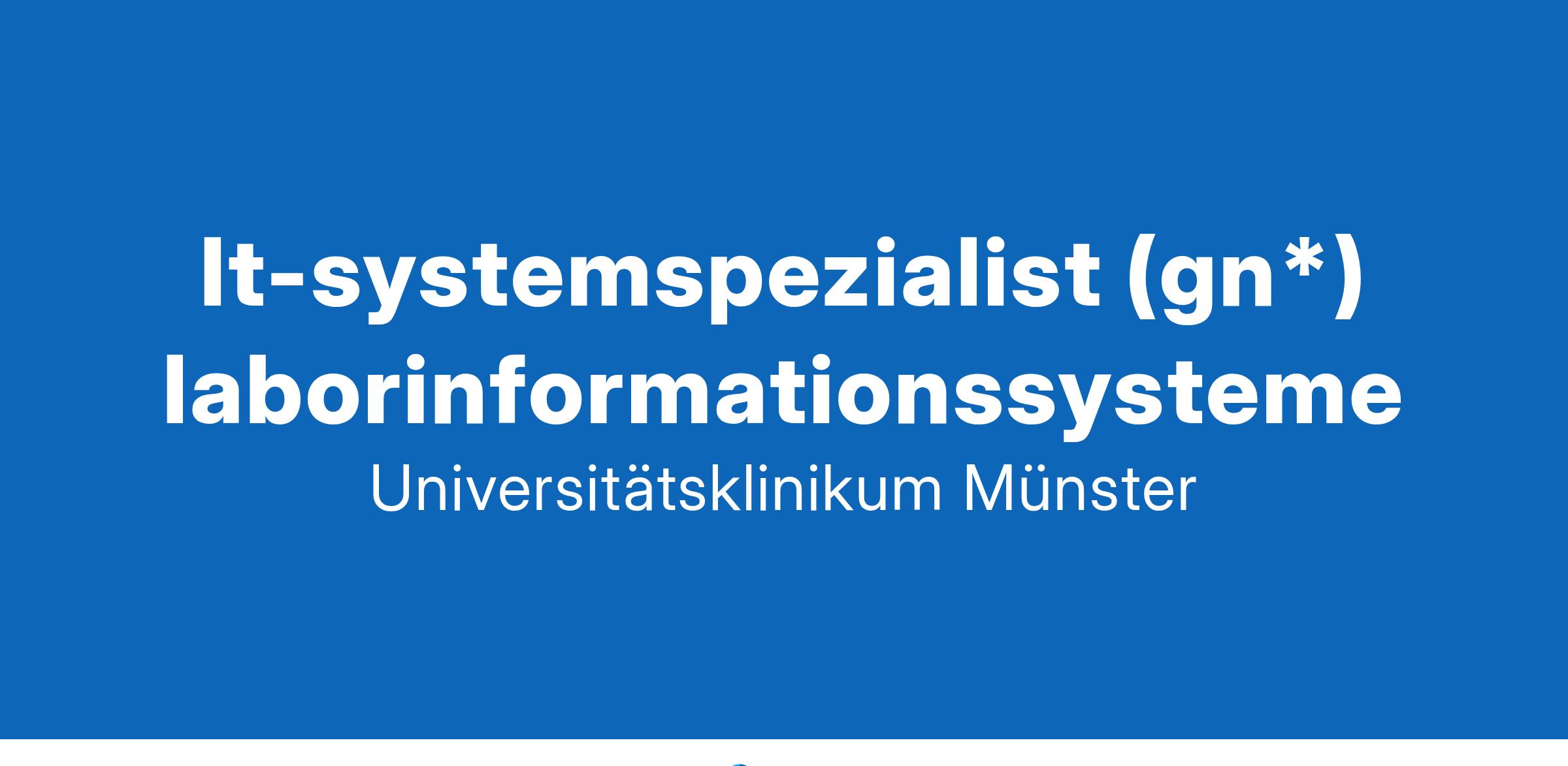Universitätsklinikum Münster -- IT-Systemspezialist (gn*) Laborinformationssysteme*IT-Systemspezialist (gn*) Laborinformationssysteme*Unbefristet | Vollzeit mit 38,5 Wochenstunden | Vergütung nach TV-L | Geschäftsbereich IT – Klinische Systeme | Kennziffer 10233* Wir sind das UKM*. Wir haben einen klaren gesellschaftlichen Auftrag und mit der Verbindung von Krankenversorgung, Forschung und Lehre eine besondere gesellschaftliche Verantwortung.Damit wir unserem hohen Anspruch tagtäglich gerecht werden, freuen wir uns auf Deine Fachkompetenz im Geschäftsbereich IT – Klinische Systeme.Der Geschäftsbereich IT (GBIT) des Universitätsklinikums Münster ermöglicht mit über 100 Spezialisten für rund 11.000 Mitarbeitende, unsere Patienten, deren Angehörige und vernetzte Partner des UKM die Digitalisierung der Krankenversorgung. Wir unterstützen und implementieren damit effiziente Prozesse und professionelle Kommunikation. Als eine der leistungsstärksten IT-Organisationen im Münsterland betreuen wir mehr als 6.500 Arbeitsplätze, über 1.000 Server, die Weiterentwicklung und den Ausbau unserer betriebswirtschaftlichen und klinischen Systeme (vorrangig SAP und Orbis) und steuern maßgebliche strategische IT-Projekte.