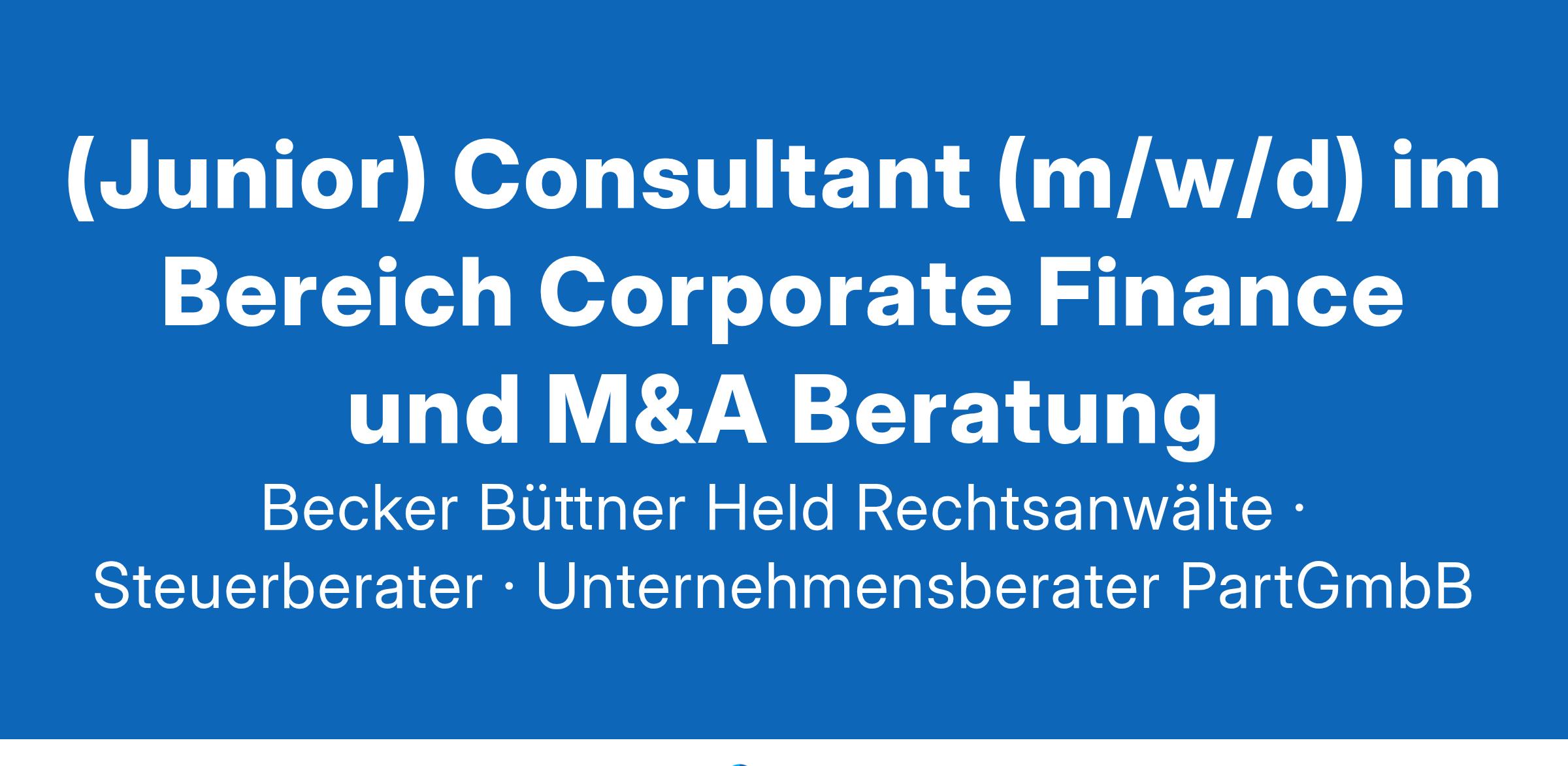 Aus Überzeugung wegweisend Als BBH-Gruppe entwickeln wir passgenaue Lösungen für die rechtlichen, betriebswirtschaftlichen, steuerlichen und strategischen Herausforderungen unserer Mandanten. Durch vorausschauendes Denken, entschlossenes Handeln und beständige Weiterentwicklung bieten wir Unternehmen aus allen Branchen, darunter die Energie- und Infrastrukturwirtschaft, Full-Service-Beratung auf höchstem Niveau: Rechtsberatung, Wirtschaftsprüfung, Steuerberatung, Unternehmensberatung und Quartierentwicklung. All das wäre ohne ein starkes Team undenkbar. Deshalb unterstützen rund 700 Mitarbeiter*innen in Berlin, München, Köln, Hamburg, Stuttgart, Erfurt und Brüssel unsere Mandanten vor und hinter den Kulissen. Wir freuen uns über Unterstützung durch eine*n (JUNIOR) CONSULTANT (M/W/D) im Bereich Corporate Finance und M&A Beratung in München Ihr Verantwortungsbereich Unterstützung des Teams bei der Erarbeitung optimaler Lösungen für anspruchsvolle Fragestellungen im Zusammenhang mit Unternehmensakquisitionen, Verkäufen und strategischer Beratung im Corporate Finance Bewerten von Unternehmen und Unternehmensanteilen Erstellen von Bewertungsmodellen in MS-Excel und Ableitung von Unternehmenswerten Analyse von Kapitalmarktdaten mit Hilfe von Informationsdatendienstleistern (z.B. Bloomberg Professional) Betriebswirtschaftliche Zuarbeit bei Rechtsstreitigkeiten Optimieren von Geschäftsprozessen unserer Mandant*innen Unterstützen bei Marketingmaßnahmen und Geschäftsentwicklung Das bringen Sie mit Abgeschlossenes Studium (Bachelor/Master) im Bereich der Wirtschaftswissenschaften mit dem Schwerpunkt Finanzmanagement oder Rechnungslegung Erste praktische Erfahrung in den Bereichen Finanzanalyse, Unternehmensbewertung und Rechnungslegung im Rahmen der Ausbildung, von Praktika oder des Studiums wünschenswert Herausragende analytische und konzeptionelle Fähigkeiten Ein hohes Maß an Teamfähigkeit, Eigeninitiative und Verantwortungsbewusstsein Unternehmerisches Denken und Handeln Sicherer Umgang mit den gängigen MS Office-Anwendungen Sehr gute Kenntnisse in Deutsch und Englisch in Wort und Schrift Das haben wir zu bieten Bei BBH arbeiten Sie in einem modernen Arbeitsumfeld mit zentral gelegenen Standorten. Kein Tag ist wie der andere! Spannende Fragestellungen lösen Sie interdisziplinär gemeinsam mit Kolleg*innen. Gleichzeitig fördern wir Ihre persönliche Weiterentwicklung. Natürlich haben wir noch mehr zu bieten: Attraktives Einstiegsgehalt für Berufseinsteiger*innen mit transparentem Lockstep Gehalts- und Bonussystem Aktive Förderung zur Erlangung von Zusatzqualifikationen (CVA/CFA) und breit gefächertes internes Fort- und Weiterbildungsangebot (BBH-Akademie) Vereinbarkeit von Beruf, Familie und Freizeit, dank flexibler Arbeitszeitgestaltung, Teilzeitmodellen, Kitazuschuss und Lohnfortzahlung für die ersten 5 Kindkrank-Tage im Jahr Betriebliches Gesundheitsmanagement zur Förderung der mentalen und körperlichen Gesundheit, inklusive vergünstigte Mitgliedschaft bei Urban Sports Mobiler Reinigungsservice für Businesskleidung Immer noch nicht genug? Die vollständige Liste unserer Benefits finden Sie hier. Bereits von BBH überzeugt? Lernen wir uns doch am besten persönlich kennen! Bewerben Sie sich ganz einfach über unser Online-Portal. Bei weiteren Fragen stehen wir Ihnen gern zur Verfügung. Lea Roth HR-Referentin Recruiting +49(0)89 23 11 64-444 lea.roth@bbh-online.de ZUR ONLINE-BEWERBUNG