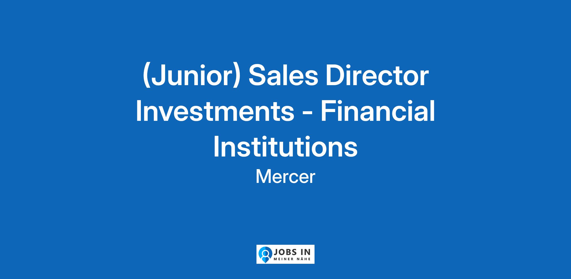 (Junior) Sales Director Investments - Financial Institutions Das erwartet Dich: In dieser Position bist du Teil des Investments Team von Mercer und untersttzt den Ausbau unserer Investments Dienstleistungen (Beratung, Tools und Lsungen) fr institutionelle Investoren mit Fokus auf non-Pension Institute in Deutschland. Hierzu arbeitest du sowohl mit dem globalen Investment Research als auch mit lokalen Kolleg:innen des Investmentbereichs in Deutschland zusammen. Du verfgst ber mehrjhrige Erfahrung im Vertrieb und der Kapitalanlage von Versicherungen, Stiftungen, Family Offices oder Banken und hast Spa daran, Vertriebs- und Projektttigkeiten mageblich zum Erfolg zu fhren? Dann freuen wir uns auf deine Bewerbung!