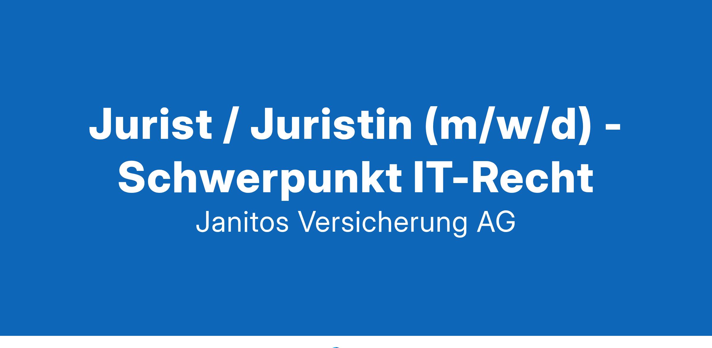 Über Janitos Versicherung AGWir sind ein etablierter und zuverlässiger Maklerversicherer mit Sitz in Heidelberg. Rund 200 engagierte Mitarbeiter*innen arbeiten täglich daran, ausgezeichnete Produkte anzubieten, guten Service erlebbar zu machen und die Versicherung von morgen Wirklichkeit werden zu lassen. Unser Ziel für die Zukunft steht: Wir werden "Der Liebling der Makler" und kompetenter Ansprechpartner für individuelle und digitale Produktlösungen. > > > > Info für Personaldienstleister: Wir arbeiten ausschließlich mit ausgewählten und von uns geprüften Personaldienstleistern zusammen. Daher bitten wir alle anderen Personaldienstleister, mit denen folglich keine Kooperation besteht, auf Kontaktaufnahmen zu verzichten.2000 gegründet100-249 MitarbeiterVersicherungMittelständler100 - 500 Mio. € JahresumsatzDu liebst es, Verantwortung zu übernehmen? Du bist sattelfest in allen IT-rechtlichen Fragestellungen samt Randgebieten innerhalb eines Unternehmens?