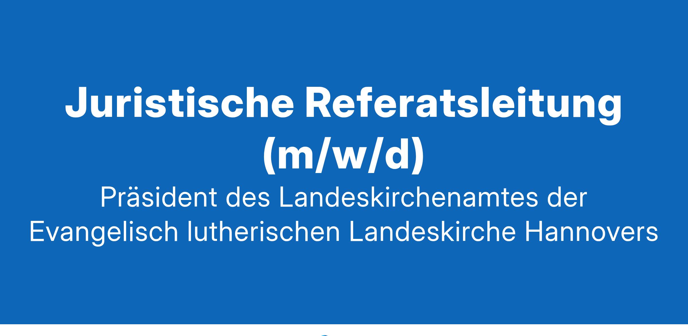 Informationen über die Evangelisch-lutherische Landeskirche Hannovers und das Landeskirchenamt finden Sie unter www.landeskirche-hannovers.de .Für Fragen stehen Ihnen Herr Präsident Dr. Jens Lehmann (Telefon 0511 1241-281 ) oder der Leiter der Rechtsabteilung, Herr Vizepräsident Dr. Rainer Mainusch (Telefon 0511 1241-284 ) gerne zur Verfügung.Ihre aussagekräftige Bewerbung richten Sie bitte bis zum 9. Februar 2025 an den:Präsidenten des Landeskirchenamtes
