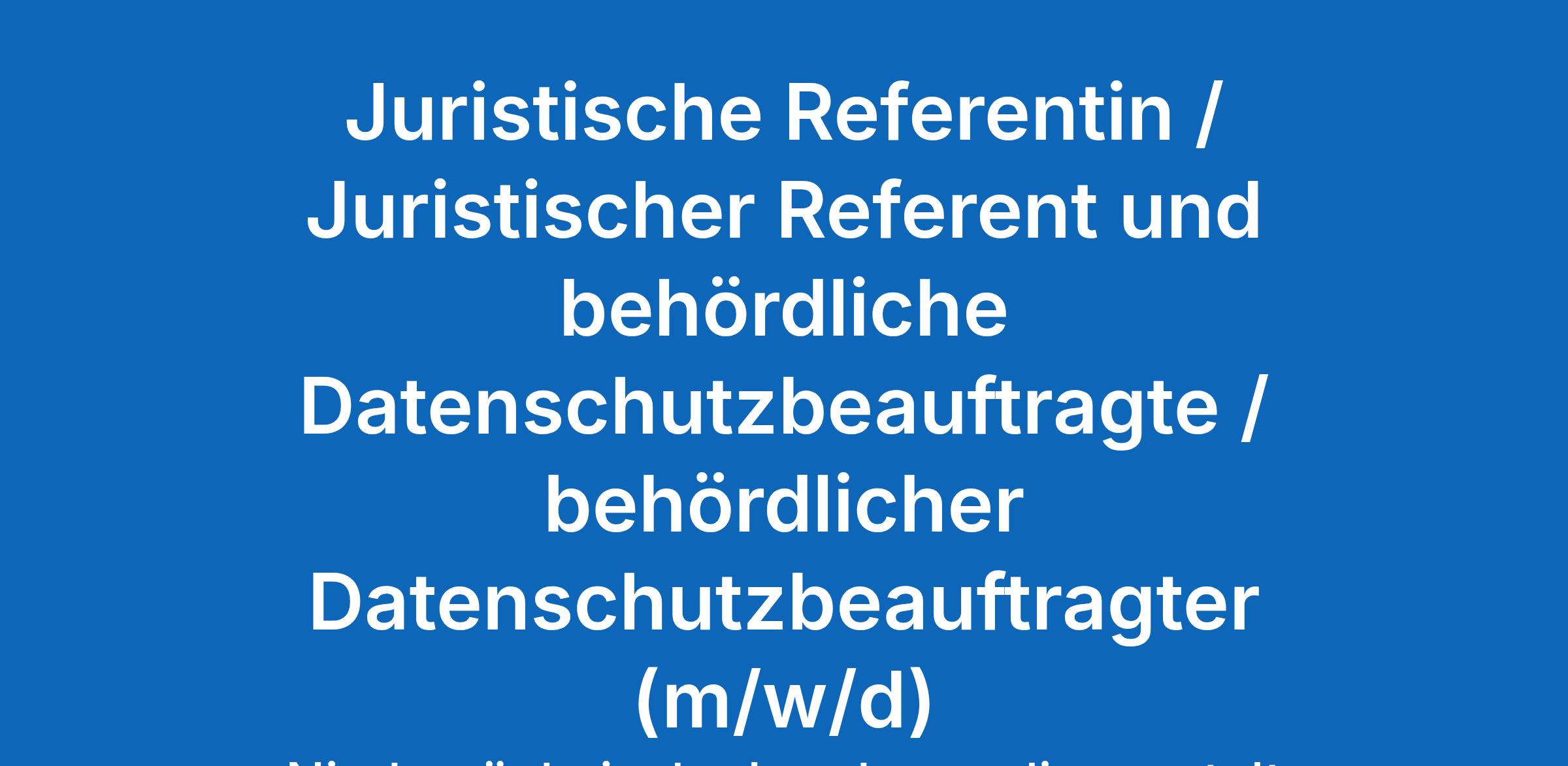 Juristischen Referentin/Juristischen Referenten und behördlichen Datenschutzbeauftragten (m/w/d)