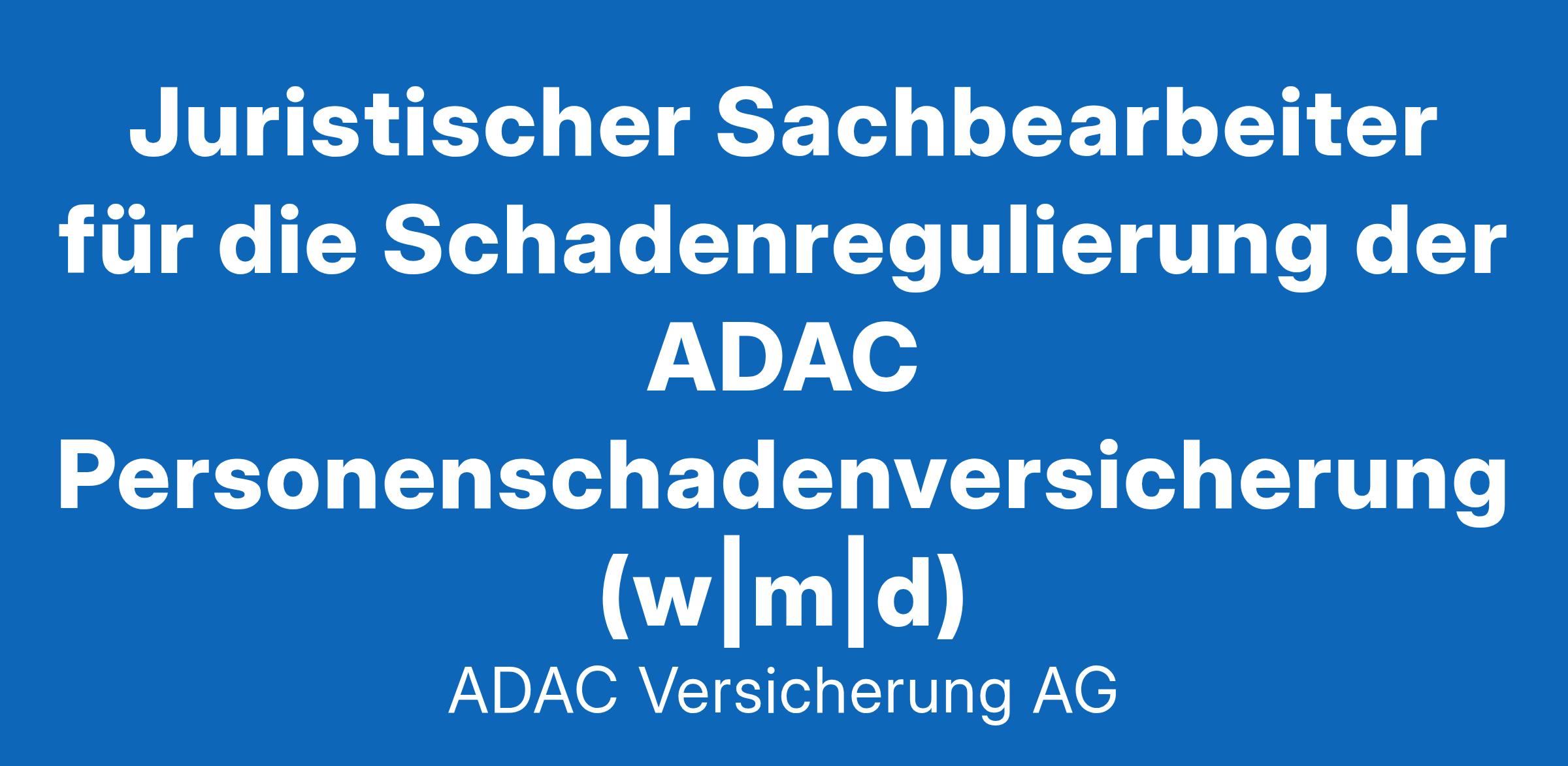 Juristischer Sachbearbeiter für die Schadenregulierung der ADAC Personenschadenversicherung (w|m|d)Der ADAC ist immer in Bewegung und da, um zu helfen - dabei decken wir die unterschiedlichsten Bereiche ab, wie z.B.: Versicherungen, Reisen und medizinische Unterstützung, rechtliche Beratung, Digitalisierung, klassische Pannenhilfe oder die Luftrettung. Wir sind da.