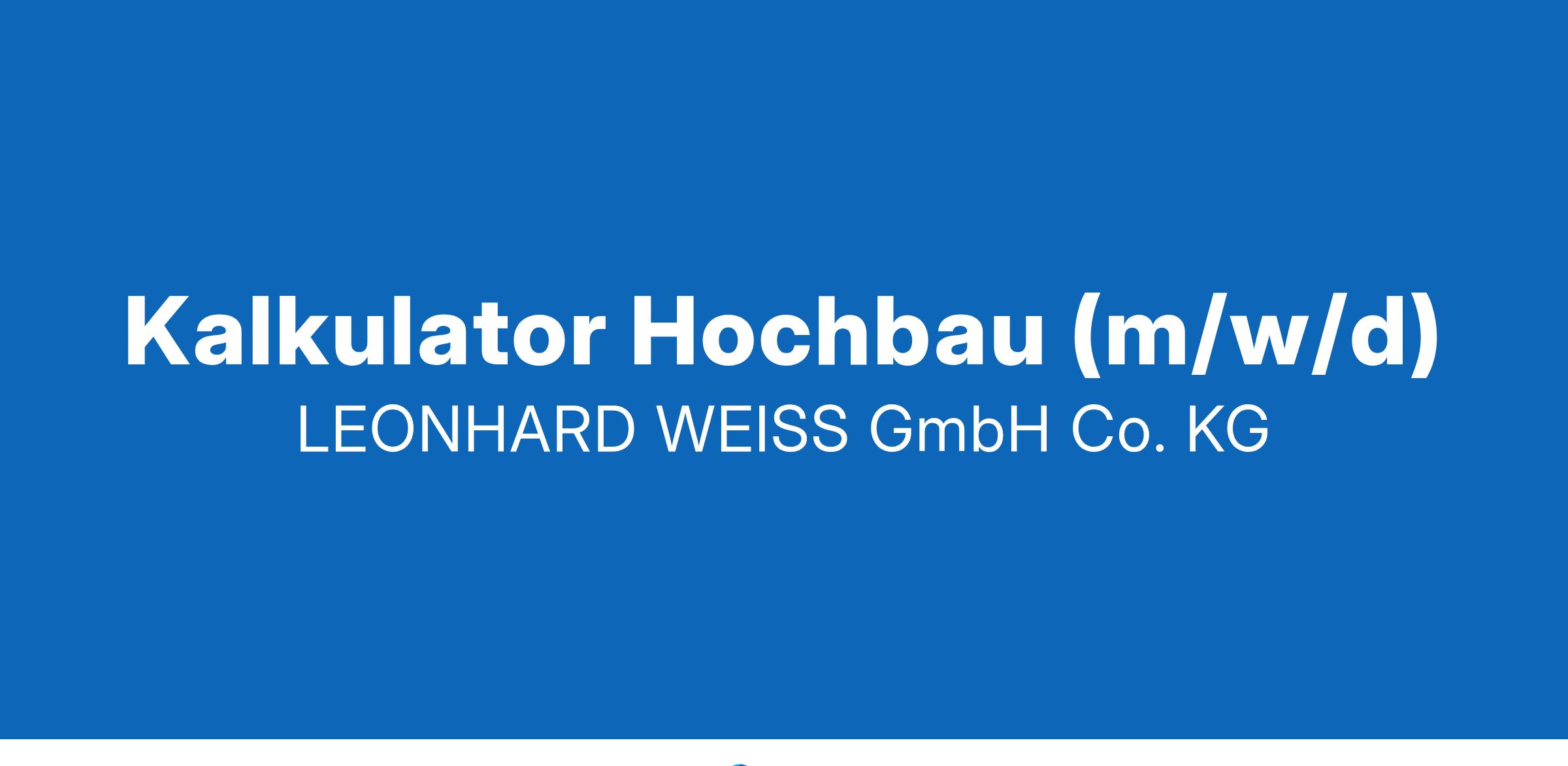 Über uns LEONHARD WEISS wurde im Jahr 1900 als reines Gleisbauunternehmen gegründet. Aus diesen Ursprüngen hat sich heute eine innovative, mittelständische Unternehmensgruppe mit über 7.700 Mitarbeiterinnen und Mitarbeitern entwickelt, die in nahezu allen Sparten des Bauens tätig ist. Unser Portfolio im Ingenieurhochbau umfasst u. a. den Neubau, Umbau und Ausbau von Industrie- und Wohnanlagen, Kommunal- und Gewerbebauten. Aufgaben Sie kalkulieren eigenverantwortlich Hochbauprojekte Sie wirken bei der Projektauswahl und Akquisition mit Sie überprüfen Ausschreibungsunterlagen Sie unterstützen bei Auftragsverhandlungen Sie beraten und unterstützen unsere Kunden in technischen Fragen Profil Abgeschlossenes Studium zum Bauingenieur (m/w/d) Erfahrung in der Kalkulation komplexer Bauprojekte im Ingenieurhochbau Hohes technisches Verständnis Sicherer Umgang mit bauspezifischer Software (z. B. RIB iTWO) Einsatzbereitschaft, Ideenreichtum und Freude an der Arbeit im Team Wir bieten Bessere Work-Life-Balance durch Vertrauensarbeitszeit in Kombination mit Arbeitszeitkonto +/- 40 Stunden. Mobiles Arbeiten möglich Verpflegungsmöglichkeiten, z. B. Casino, Essensgutscheine Übertarifliche Leistungen z. B. 13. Monatseinkommen, Auslösung 45,00€, Verpflegungszuschuss 8,00€ - 15,00€ Ergebnisbeteiligung bzw. Prämie und zusätzliches Urlaubsgeld Betriebliche Altersvorsorge Vielfältige Weiterbildungsmöglichkeiten durch unsere LEONHARD WEISS-Akademie Betriebliches Gesundheitsmanagement Flexible und innovative Arbeitsplätze mit modernster Technik Vielfältige Mitarbeiterrabatte und Fitnesskooperationen z. B. Hansefit Firmenwagen mit privater Nutzung