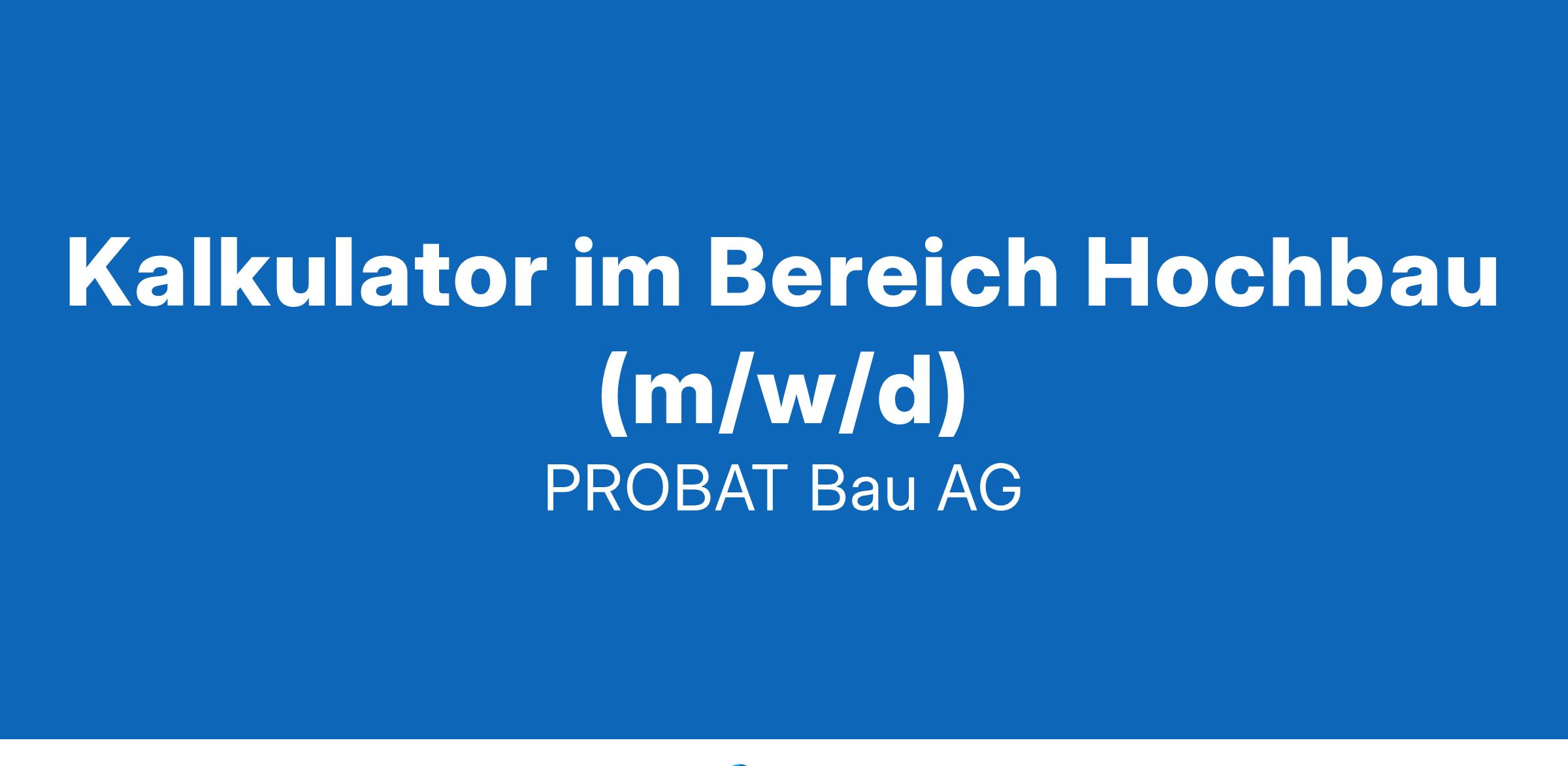 Die PROBAT Bau AG ist ein führendes Bauunternehmen mit Firmensitz im Münchener Osten und der Niederlassung in Ingolstadt.Unser Leistungsspektrum erstreckt sich vom Bauen im Bestand über Rohbau bis hin zum schlüsselfertigen Bauen. Aufgrund unseres konstanten und erfolgreichen Wachstums suchen wir zur Verstärkung unseres Teams einen Kalkulator (m/w/d).