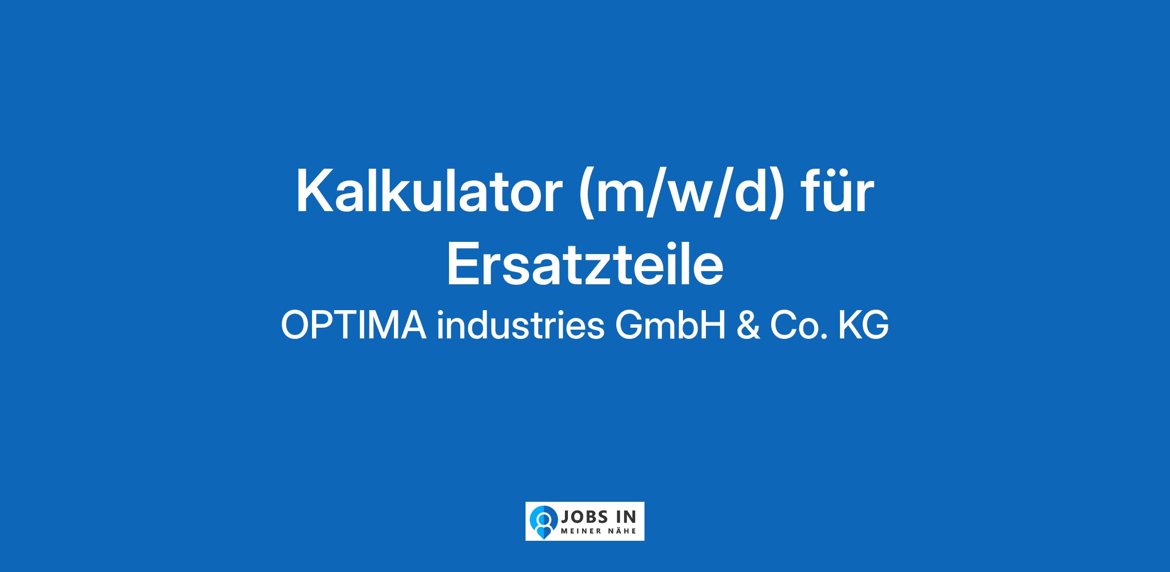 Als Kalkulator (m/w/d) für Ersatzteile sind Sie Teil der Optima Gruppe. Ob Finance, IT, Legal, Marketing oder Personal - gemeinsam agieren wir als Headquarter für unsere vier Geschäftsbereiche und gestalten die strategische sowie operative Ausrichtung des Unternehmens aktiv mit.
