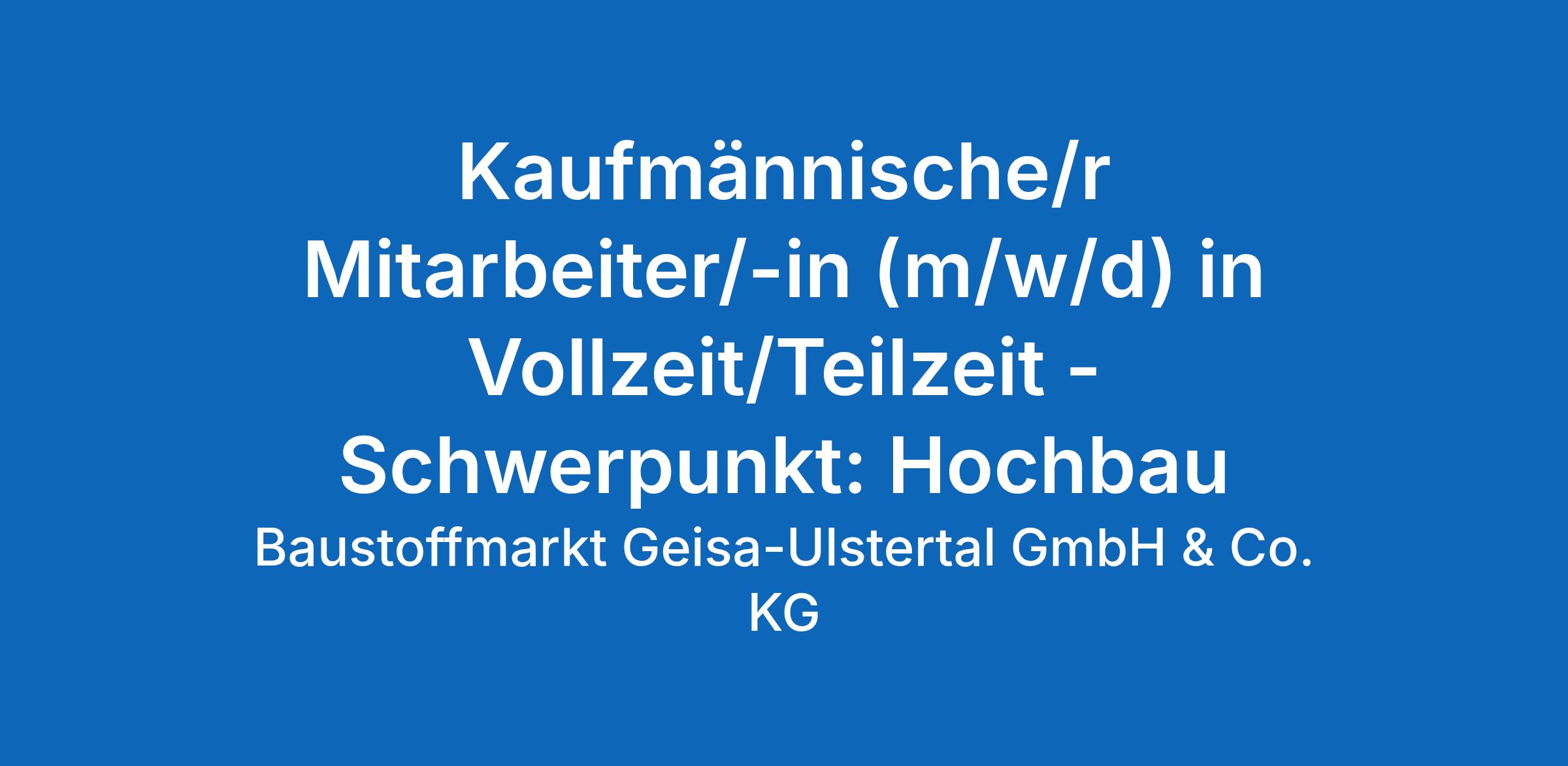 Kaufmännische/r Mitarbeiter/-in (m/w/d) in Vollzeit/Teilzeit – Schwerpunkt: Hochbau