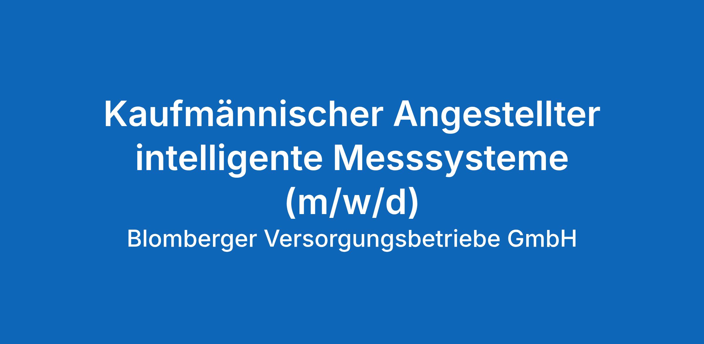 Die Blomberger Versorgungsbetriebe sind ein modernes, leistungsstarkes, regional tätiges, kommunales Energieversorgungsunternehmen. Wir versorgen die Haushalte in Blomberg mit Strom, Gas, Wasser und Wärme und betreiben außerdem ein Hallen- und ein Freibad. Zum nächstmöglichen Zeitpunkt suchen wir: