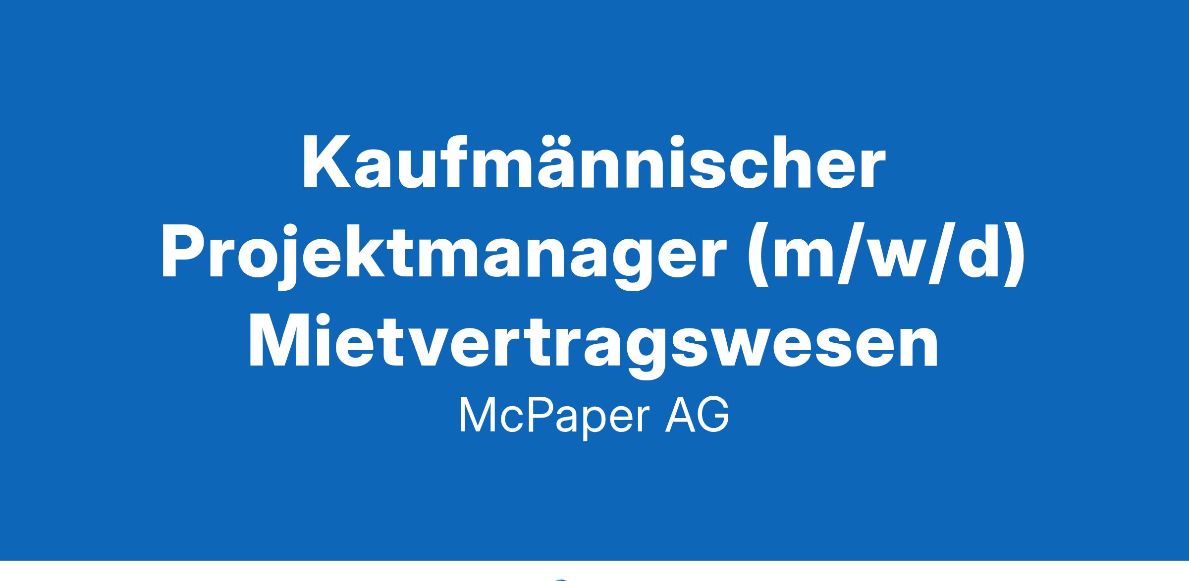 McPaper ist Deutschlands führender Filialist für Papier, Büro- und Schreibwaren mit rund 300 Filialen. Was immer für Schule, Büro, Zeichnen oder zum Verpacken und Verschenken benötigt wird: Wir haben es. Für unsere Zentrale in Berlin suchen wir ab sofort einen kaufmännischen Projektmanager (m/w/d) Mietvertragswesen. Das sind Ihre Aufgaben: Übernahme von administrativen, kommunikativen und organisatorischen Tätigkeiten Verwaltung von gewerblichen Mietverträgen als Mieter (Vertragsanpassung, Nebenkostenabrechnung, Datenpflege etc.) Konzipieren und Organisieren von strategischen Projekten, insbesondere im Bereich Expansion (Standortanalyse, Angebotsanfrage sowie Vertragsprüfung etc.) Erfassung und Auswertung von Kennzahlen inklusive Projektcontrolling Das bieten wir: abwechslungsreiche Tätigkeit in einem renommierten Unternehmen einen unbefristeten Arbeitsvertrag, denn Ihre Sicherheit ist uns wichtig ein im Branchenvergleich überdurchschnittlich hohes Fixgehalt Prämienauszahlung bei Erfolg Gute Weiterentwicklungs- und Aufstiegsmöglichkeiten in den nächsten Jahren 25% Mitarbeiterrabatt in unseren Filialen Betriebliche Altersvorsorge Das bringen Sie mit: abgeschlossene kaufmännische oder immobilienspezifische Ausbildung (z.B. Immobilienkauffrau (m/w/d) bzw. Immobilienkaufmann (m/w/d), Immobilienfachwirt (m/w/d)) oder ein betriebswirtschaftliches Studium idealerweise Berufserfahrung im Projektmanagement versierter Umgang mit allen MS-Office-Anwendungen schnelle Auffassungsgabe, analytisches Denken und eine disziplinierte Arbeitsweise Wir freuen uns auf Ihre Bewerbung! Bitte senden Sie Ihre Bewerbung an: McPaper AG / Personalabteilung Hohenzollerndamm 150-151 14199 Berlin oder per E-Mail an: Bewerbungen-McPaper@mcpaper.de Bitte beachten Sie, dass wir ausschließlich Dokumente im PDF-Format verarbeiten können www.mcpaper.de