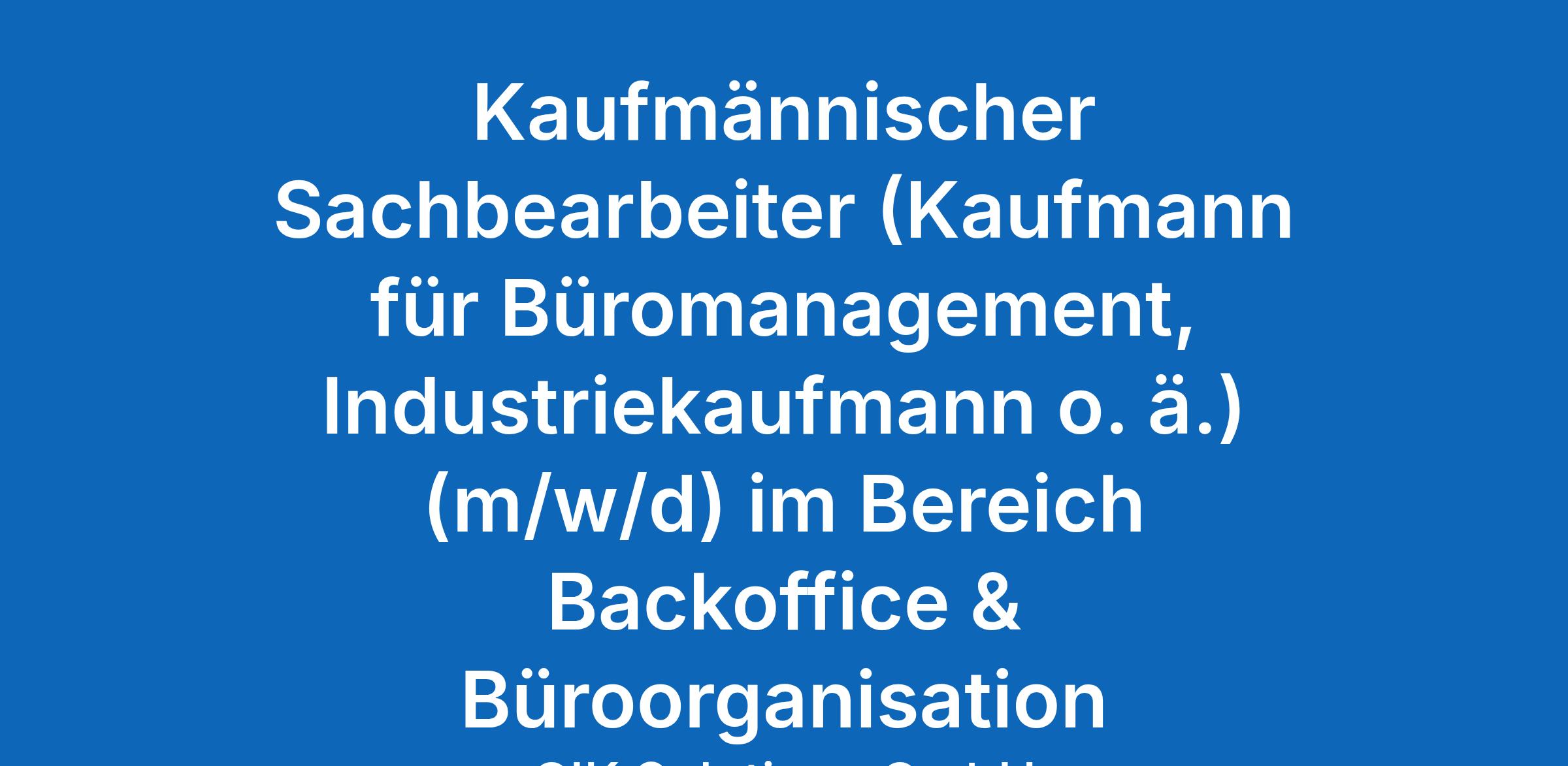 Kaufmännischer Sachbearbeiter (Kaufmann für Büromanagement, Industriekaufmann o. ä.) (m/w/d) im Bereich Backoffice & Büroorganisation