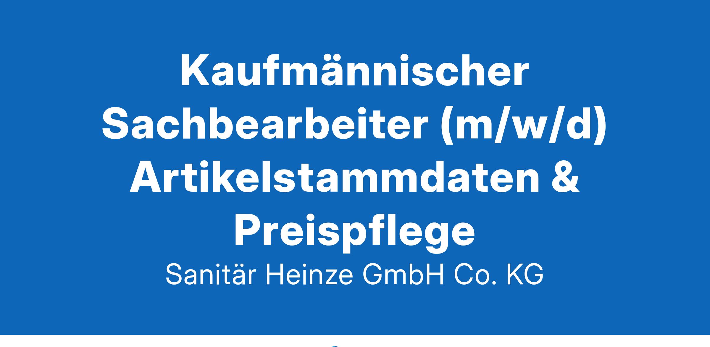 Kaufmännischer Sachbearbeiter (m/w/d) Artikelstammdaten & Preispflege Zur Verstärkung unseres Teams in Ainring suchen wir in Vollzeit ab sofort einen Kaufmännischen Mitarbeiter Preispflege m/w/d IHRE AUFGABEN Sie sind verantwortlich für die Pflege der Produktstammdaten innerhalb der Sanitär-Heinze Gruppe. Sie arbeiten eng mit verschiedenen Abteilungen zur Sortimentsbestimmung zusammen. Sie erstellen und aktualisieren Preislisten in unserer Katalogsoftware. IHR PROFIL Sie besitzen eine erfolgreiche abgeschlossene kaufmännische Ausbildung. Sie können idealerweise bereits auf Berufserfahrung im Artikelstammdatenmanagement zurückgreifen. Sie verfügen über gute bis sehr gute Kenntnisse im Umgang mit MS Office. Im Idealfall sind Sie mit SAP R/3, und MS Office vertraut. Sie sind es gewohnt, selbstständig und verantwortungsbewusst zu arbeiten. Ein hohes Engagement, Teamfähigkeit und Zuverlässigkeit runden Ihr Profil ab. IHRE VORTEILE Gute und leistungsgerechte Vergütung Weiterbildung durch interne Schulungen Urlaubs- & Weihnachtsgeld Langfristige Perspektive Flexible Arbeitszeiten Modernes Arbeitsumfeld Mitarbeiterevents Ein hohes Maß an Eigenverantwortung Sie fühlen sich angesprochen? Dann freuen wir uns darauf, Sie kennenzulernen! Bitte senden Sie Ihre Bewerbung, vorzugsweise per E-Mail (Kennwort 1000-KMAP-1000), mit Angabe des möglichen Eintrittstermins und Ihrer Gehaltsvorstellung an unsere Personalabteilung. Sanitär-Heinze GmbH & Co. KG Thomas-Dachser-Str. 2 D-83404 Ainring jobs_fr@sanitaer-heinze.com sanitär-heinze.com
