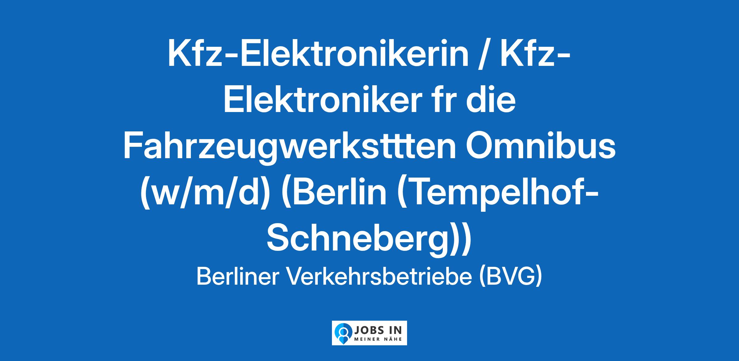 Kfz-Elektronikerin / Kfz-Elektroniker fr die Fahrzeugwerksttten Omnibus (w/m/d) (Berlin (Tempelhof-Schneberg))
