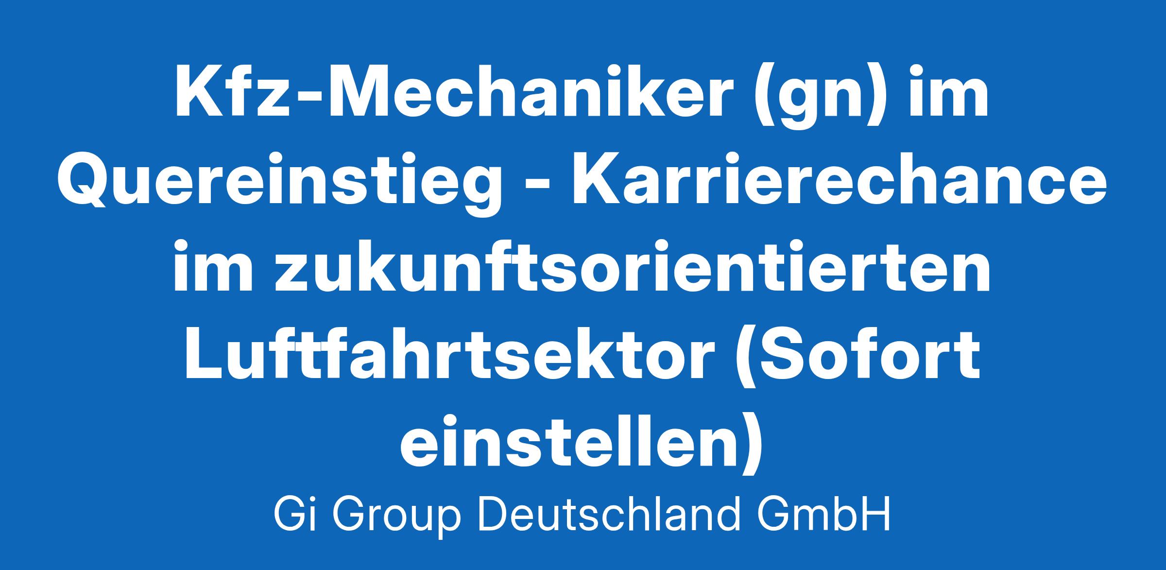 Kfz-Mechaniker (gn) im Quereinstieg ab sofort in Vollzeit in Hamburg im Rahmen der Direktvermittlung Die Gi Group ist ein international agierender Personaldienstleister mit mehr als 500 Standorten in 40 Ländern. Unser Kunde ist ein renomniertes und zukunftorientiertes Unternehmen aus der Luftfahrt. Deine Aufgaben Die Wartung und Reparatur von Flugzeugkomponenten Reparaturaufträge bearbeiten und Modifikationen im Rahmen der ergänzenden Instandhaltung durchführen Komponenten auf einem Teststand prüfen und einstellen Dokumentation der Instandhaltungsarbeiten vornehmen und Komponenten für den Flugbetrieb zertifizieren Dein Profil Eine abgeschlossene Berufsausbildung in einem luftfahrttechnischen Bereich, z.B. Fluggerätmechaniker Alternativ: Eine abgeschlossene Berufsausbildung in einem metallverarbeitenden Bereich, z.B.Industriemechaniker, Kfz-Mechaniker, Zerspanungsmechaniker, Mechatroniker, Werkzeugmechaniker, Feinwerkmechaniker, Anlagenmechaniker oder eine vergleichbare Qualifikation Bereitschaft zum Erwerb fehlender Qualifikationen sowie zu berufsbezogener Weiterbildung Gute Englischkenntnisse Das bietet unser Kunde Urlaubs- und Weihnachtsgeld sowie eine Gewinnbeteiligung Flexible Arbeitszeiten (Gleitzeit, keine Schichtarbeit) und 30 Tage Urlaub Flugvergünstigungen, Einkaufsrabatte in Geschäften und Jobrad-Leasing Kostenloses Parken, betriebliche Altersvorsorge und Verpflegungszuschuss für die Kantine Deine Bewerbung Für Deine Bewerbung als Kfz-Mechaniker im Quereinstieg klicke bitte einfach auf „Jetzt bewerben“. Dort kannst Du Deine Kontaktdaten eingeben sowie Deinen Lebenslauf und Deine Bewerbungsunterlagen hochladen. Du benötigst dafür nur ca. 1 Minute. Dein zuständiger Personaldisponent wird sich bei Dir schnellstmöglich melden. Gerne kannst Du uns auch Deine Bewerbungsunterlagen per E-Mail zusenden. Wir freuen uns auf Deine Bewerbung als Kfz-Mechaniker im Quereinstieg! Unsere Stellenangebote richten sich an Arbeitssuchende jeglichen Geschlechts. (gn) = geschlechtsneutral. Kontakt Gi Group Recruiting Team