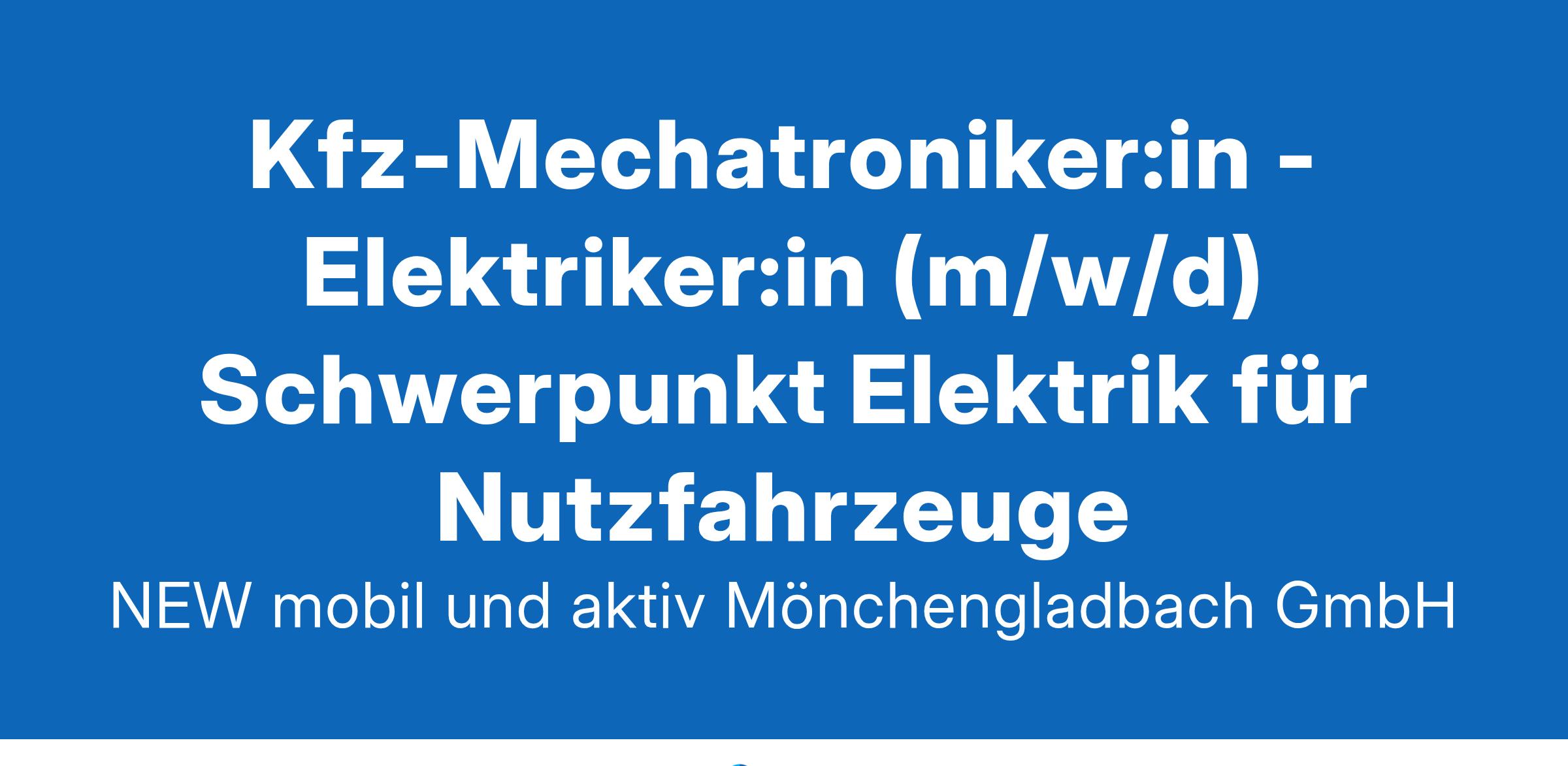 Die NEW mobil und aktiv Mönchengladbach GmbH sucht für ihren Standort in Mönchengladbach eine/nKfz-Mechatroniker:in - Elektriker:in (m/w/d),