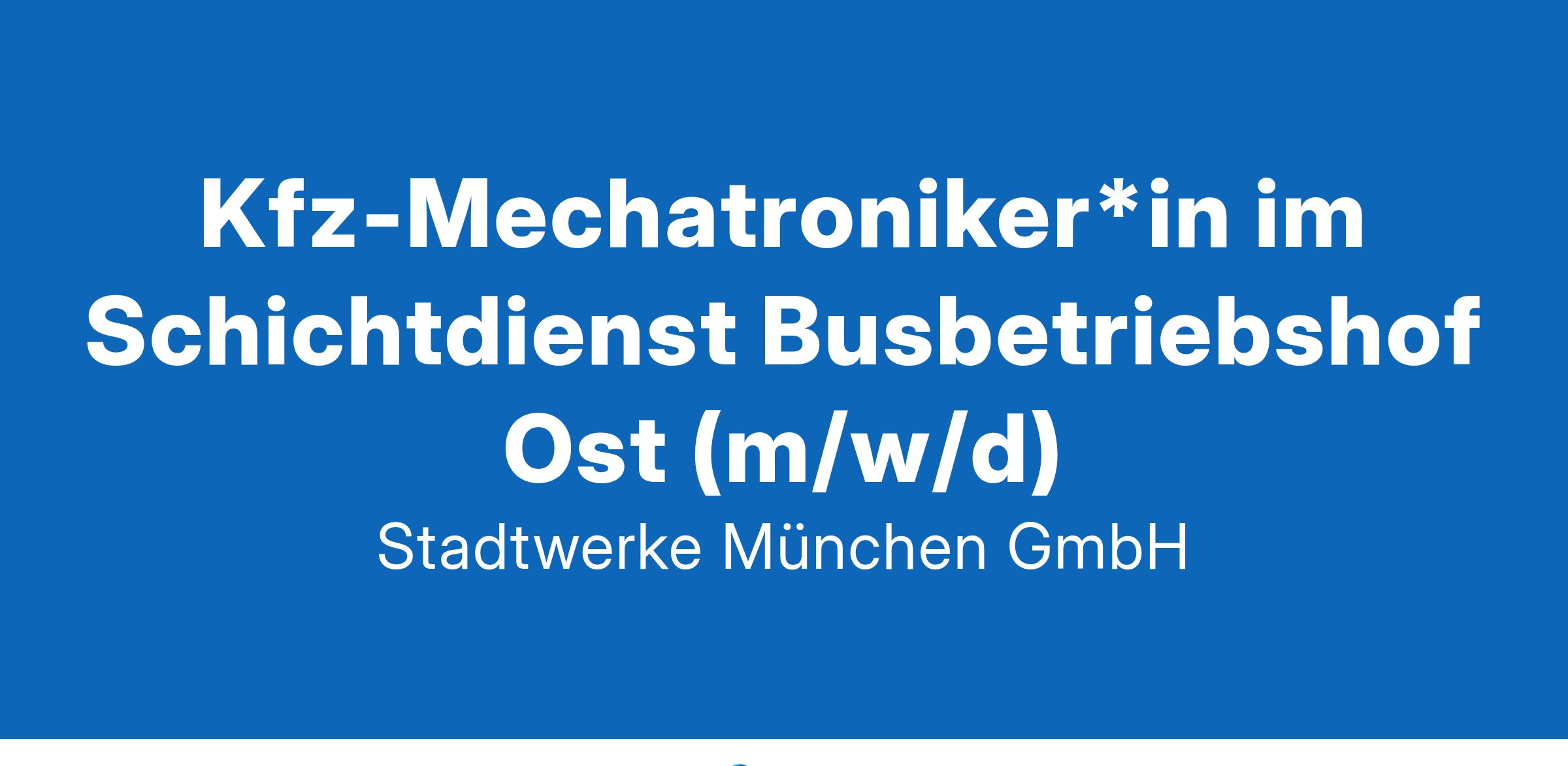 Kfz-Mechatroniker*in im Schichtdienst Busbetriebshof Ost (m/w/d) Jetzt bewerben » Tätigkeitsbereich Busbetriebshof Ost | Ressort Mobilität UnternehmenSWM GmbH Standort München VertragsartVollzeit Auf einen Blick Im Bereich "Bustechnik Ost" sorgen aktuell rund 40 Mitarbeiter*innen für einen reibungslosen Ablauf von Wartung, Instandhaltung und Betriebsbereitmachung der ca. 160 Fahrzeuge, die für den täglichen Linienverkehr der MVG eingesetzt werden. Um unseren Fahrgästen eine angenehme Fahrt zu gewährleisten und sie zuverlässig an das Ziel zu bringen, steht für unser Team die Gewährleistung von Sicherheit, Pünktlichkeit und Sauberkeit unserer Busflotte an oberster Stelle. Darüber hinaus ist der Bereich für die erfolgreiche Integration von E-Fahrzeugen in den Fahrgastbetrieb verantwortlich, um die Klimaschutzziele der Stadt München bis 2035 erfolgreich umsetzen zu können. Das können Sie bei uns bewegen