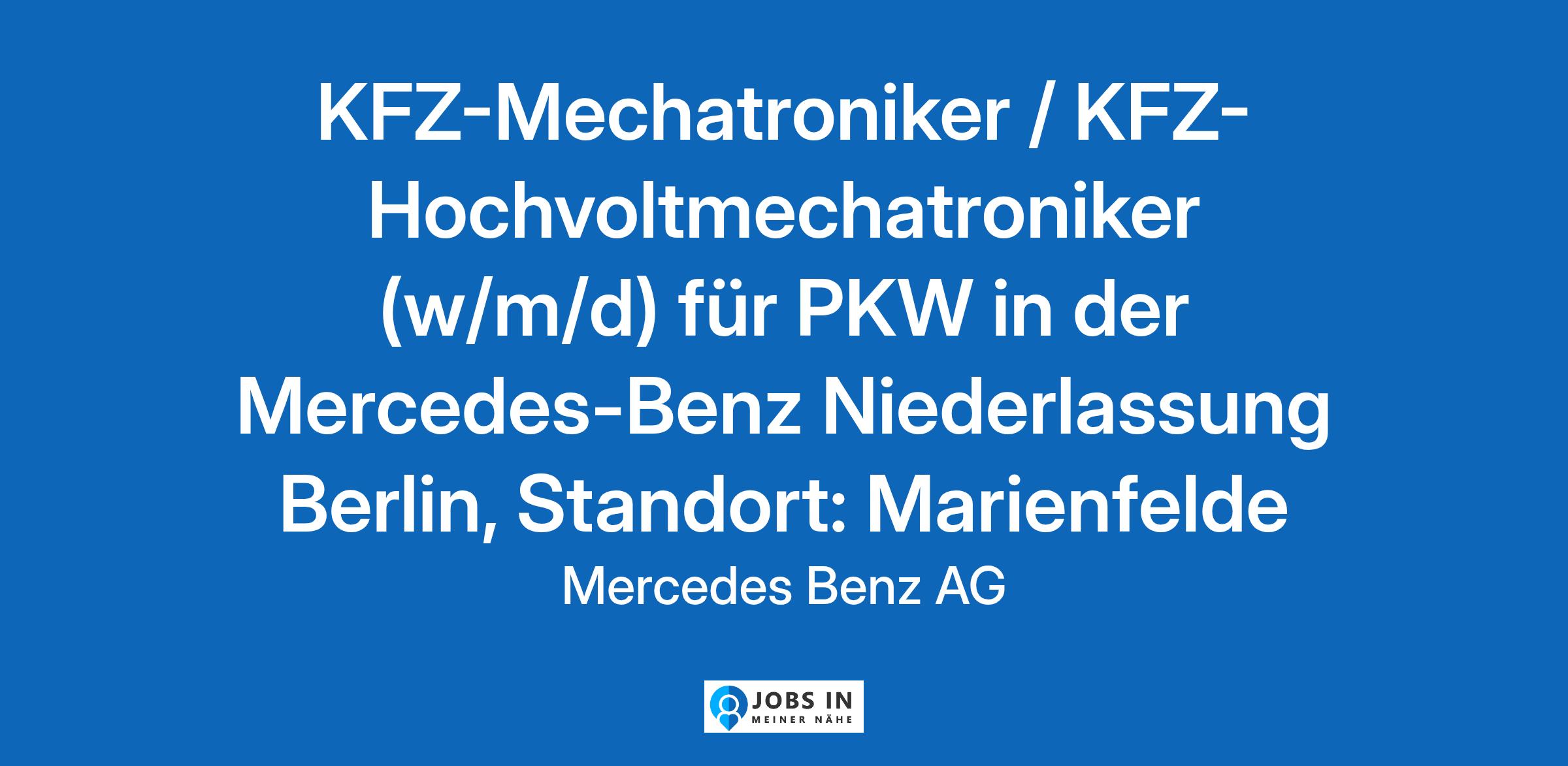 KFZ-Mechatroniker / KFZ-Hochvoltmechatroniker (w/m/d) für PKW in der Mercedes-Benz Niederlassung Berlin, Standort: Marienfelde