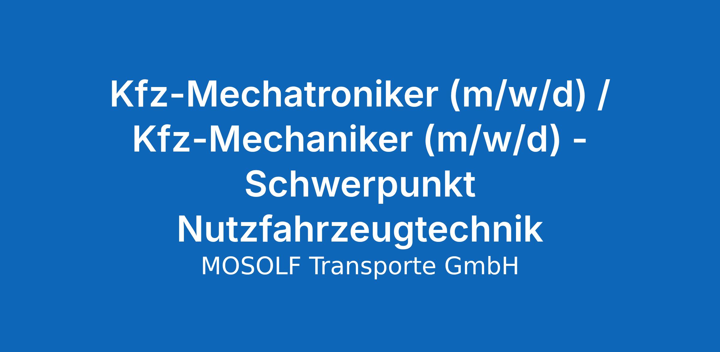 • Position: Kfz-Mechatroniker (m/w/d) / Kfz-Mechaniker (m/w/d) - Schwerpunkt Nutzfahrzeugtechnik