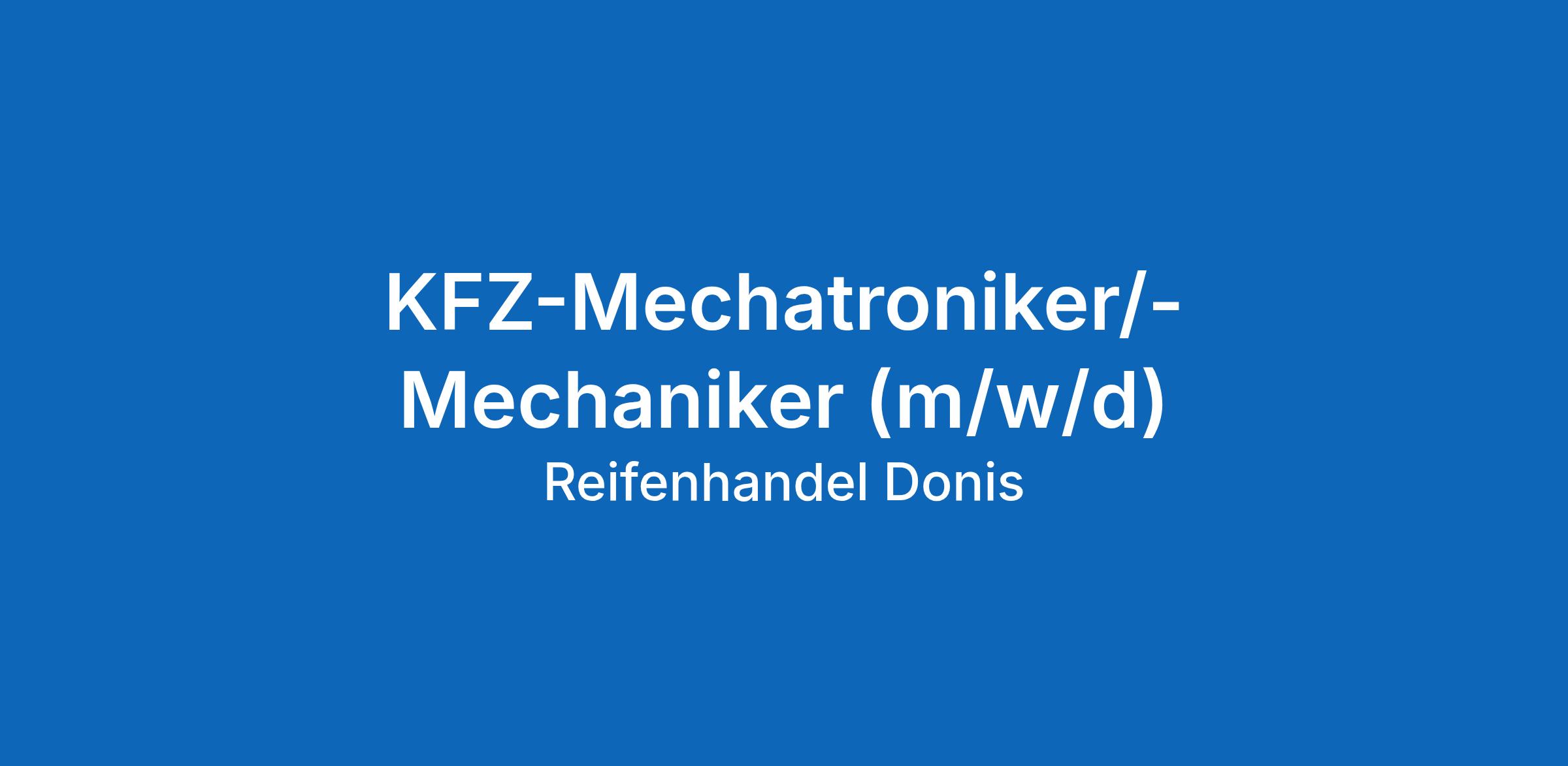 Werden Sie Teil unseres Teams und bewerben Sie sich jetzt mit Ihren vollständigen Bewerbungsunterlagen um die Stelle als KFZ-Mechatroniker/-Mechaniker (m/w/d) unter h.p.donis@reifen-donis.de