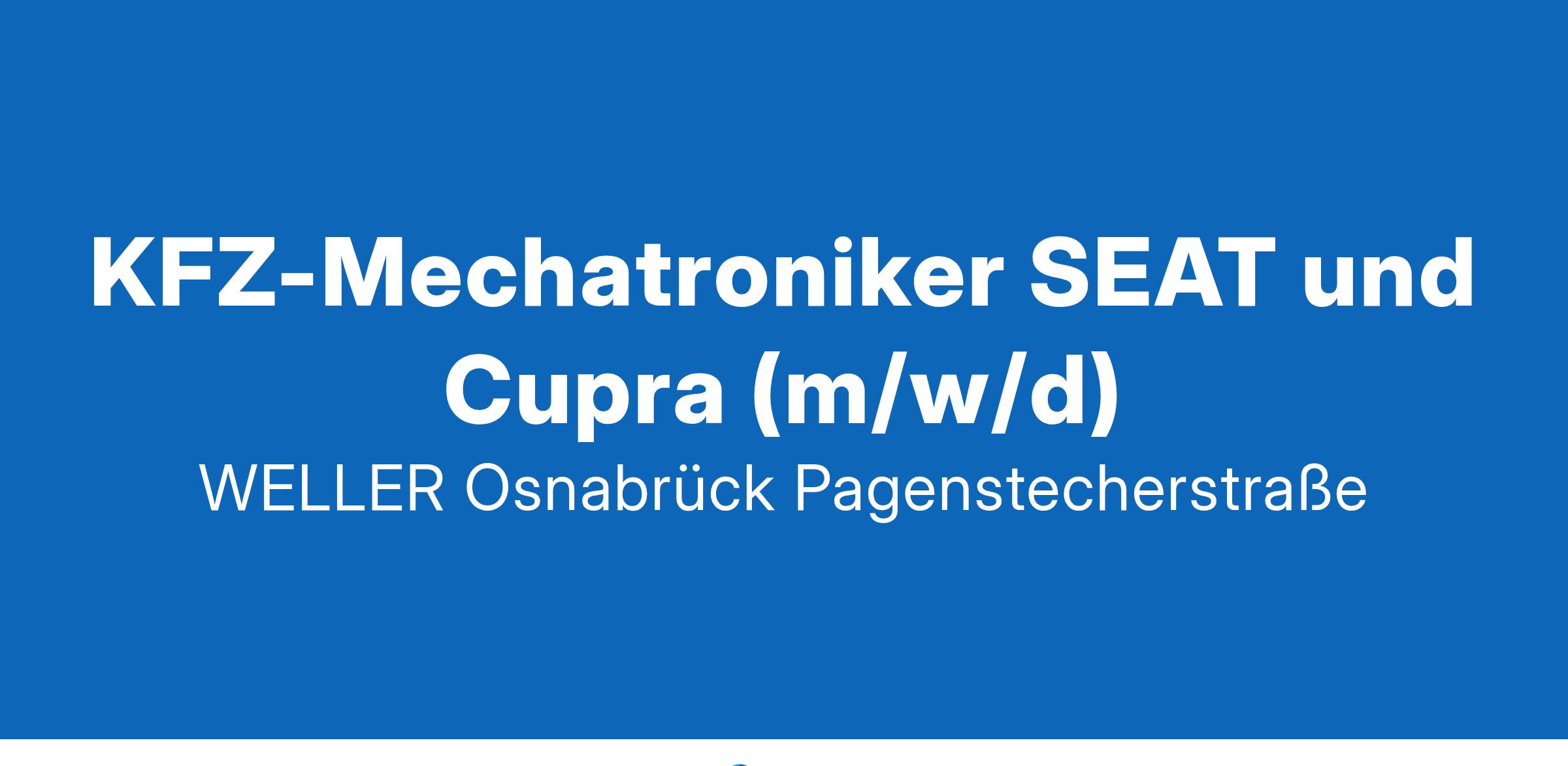 WELLER – wir zählen mit unseren 34 Standorten zu den fünf größten Automobilhändlern in Deutschland. Mit über 30.000 verkauften Fahrzeugen, einer Milliarde Euro Umsatz und ca. 2.200 Mitarbeitenden können wir auf eine über 45-jährige Erfolgsgeschichte zurückblicken. Wir bieten nicht nur ein breites Portfolio, sondern stehen für herausragenden Service und leidenschaftliche Professionalität. Bei WELLER legen wir besonderen Wert auf die kontinuierliche Weiterentwicklung unserer Mitarbeiter, denn nur durch gut ausgebildete und motivierte Teams können wir unser Ziel erreichen: unsere Kunden täglich aufs Neue zu begeistern. Werde Teil eines dynamischen Unternehmens, das auf Teamgeist und Exzellenz setzt – und bringe deine Karriere auf das nächste Level! Wir suchen Dich ab sofort für unseren WELLER-Standort als KFZ-Mechatroniker SEAT und Cupra (m/w/d) in Osnabrück Deine Aufgaben: Du führst sämtliche Wartungs- und Reparaturarbeiten an Fahrzeugen der Marken SEAT und Cupra durch, um deren einwandfreien Zustand zu gewährleisten. Du erstellst präzise Diagnosen und identifizierst die Ursachen von technischen Schäden, um diese effektiv zu beheben. Du überprüfst und testest die verschiedenen Fahrzeugsysteme auf ihre Funktionalität und Sicherheit. Du dokumentierst alle durchgeführten Arbeiten und Diagnosen gewissenhaft. Unsere Benefits: Ausgezeichnet als attraktiver Arbeitgeber mit dem „BMW Proactive Care Award“ für unsere BMW-Standorte Beteiligung am Unternehmensgewinn und Loyalitätsprämien 30 Tage Urlaub pro Jahr Arbeiten in einem innovativen, zukunftsorientierten Umfeld bei einem der führenden Automobilhändler Deutschlands Sport und Fitness Mitgliedschaften (Hansefit & EGYM Wellpass), Gesundheitsservice und corporate benefits Angebote Leasing von Fahrrädern, Elektrorollern, Smartphones, Laptops, Tablets u.v.m. Betriebliche Altersvorsorge Mit regelmäßigen Veranstaltungen voller Aktivitäten und köstlichem Essen schaffen wir gemeinsame Erinnerungen und feiern unsere Erfolge. Projekt „Unterstützung für dein Ehrenamt“ Persönliche und fachliche Weiterbildungsmöglichkeiten in unserer Online-Akademie Mitarbeitenden-App - ein unternehmensinternes soziales Netzwerk für kreativen Austausch und Vernetzung Das bringst Du mit: Du hast eine abgeschlossene Berufsausbildung als Kfz-Mechatroniker/in oder Kfz-Mechaniker/in. Du bringst erste Berufserfahrungen in der KFZ-Technik mit und hast idealerweise schon in Werkstätten gearbeitet. Du besitzt einen gültigen Führerschein der Klasse B. Du bist teamfähig und bereit, dich ständig weiterzubilden und neue Herausforderungen anzunehmen. Wir freuen uns auf Deine aussagekräftige Bewerbung über unser Online Karriereportal. Bitte teile uns Deine Gehaltsvorstellungen und Deinen frühestmöglichen Eintrittstermin mit. WELLER Performance GmbH wellergruppe.de WELLER Osnabrück Pagenstecherstraße Pagenstecherstraße 77-83 49090 Osnabrück