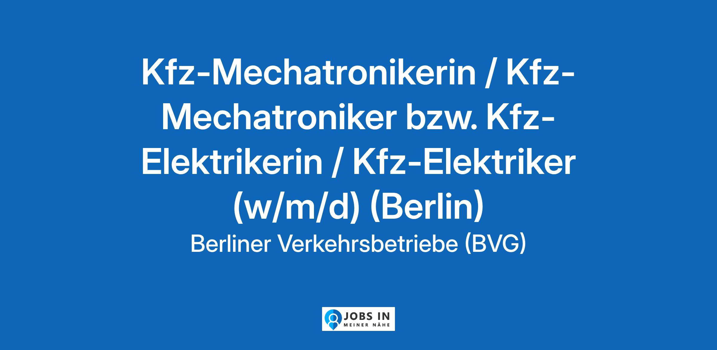 Wir suchen fr die Fahrzeugwerksttten Omnibus mehrere Mitarbeiter*innen. Unbefristet in Vollzeit (37,5 Stunden) oder Teilzeit, Vergtung nach Entgeltgruppe 7 TV-N Berlin (3.491,27 - 3.827,22), je nach Berufserfahrung. Arbeitsort: Einer unserer Betriebshfe Britz, Cicerostrae, Indira-Gandhi-Strae, Mllerstrae, Lichtenberg oder Spandau.