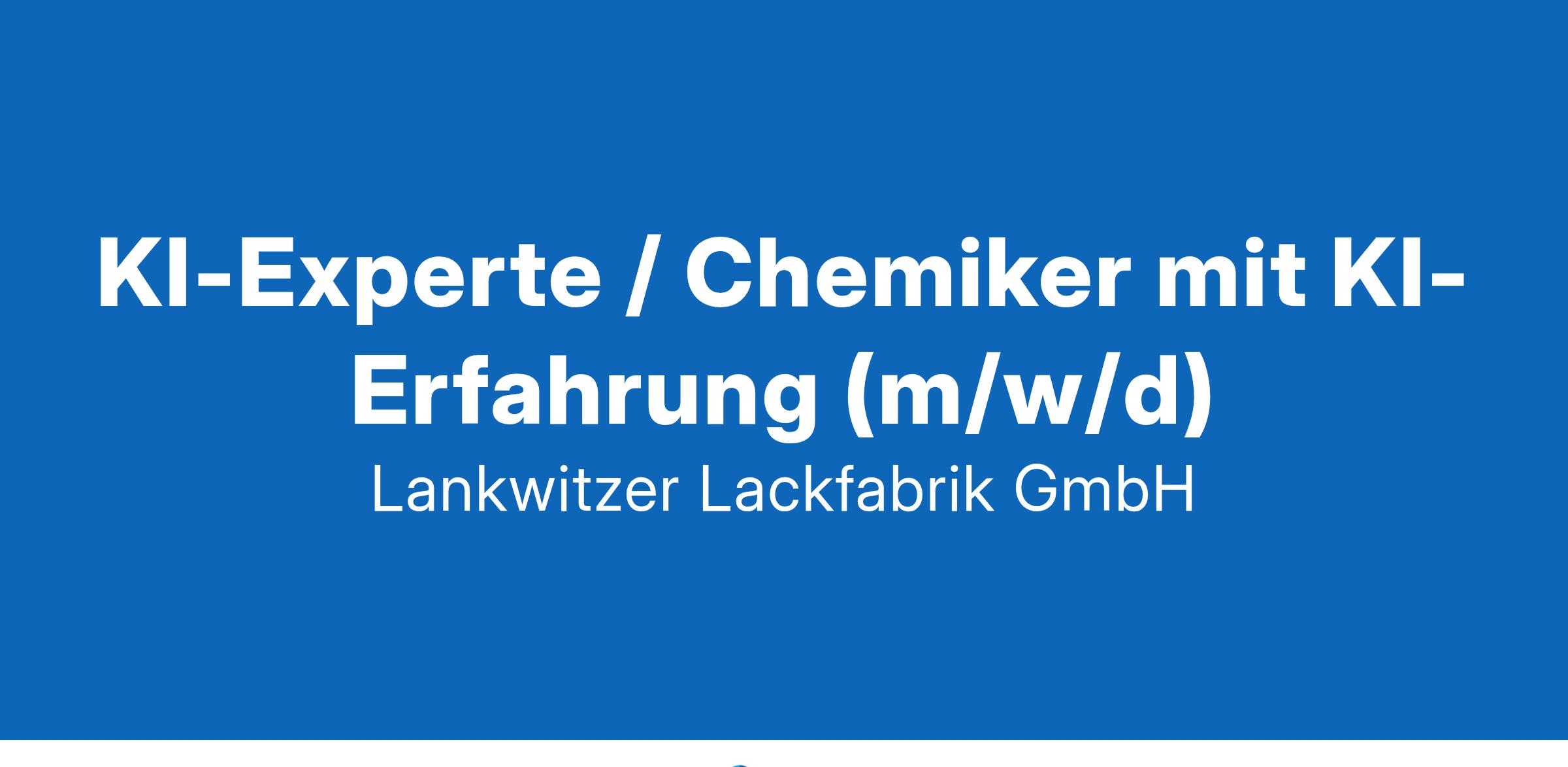 Wir suchen einen KI-Experten (m/w/d) mit chemischem Hintergrund oder einen Chemiker (m/w/d) mit Erfahrung in künstlicher Intelligenz , der uns als Projektleiter in Vollzeit am Standort Berlin dabei unterstützt, im Markt angebotene KI-Systeme auszuwählen und erfolgreich in unseren Entwicklungsprozess zu integrieren. Sie arbeiten eng mit unseren Labormitarbeitern und externen Technologiepartnern zusammen, um ein maßgeschneidertes System zu implementieren, das unsere Datenstruktur nutzt und unsere Formulierungsarbeit im Labor beschleunigt und optimiert.KI-Experte / Chemiker mit KI-Erfahrung (m/w/d)Ihr Aufgabenbereich:Auswahl und Implementierung von KI-Systemen aus dem bestehenden Markt zur Unterstützung der Lackentwicklung