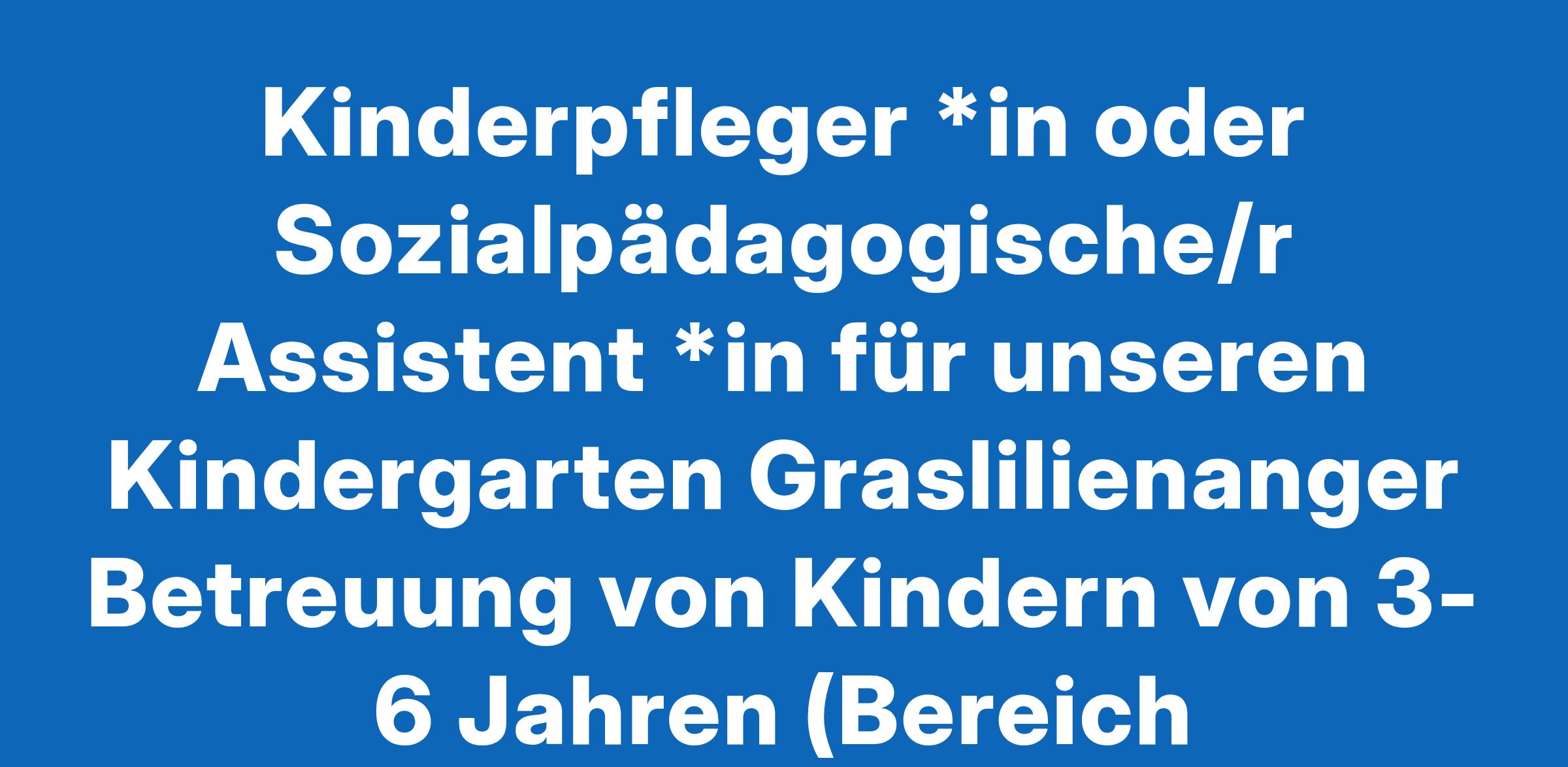 Kinderpfleger *in oder Sozialpädagogische/r Assistent *in für unseren Kindergarten Graslilienanger Betreuung von Kindern von 3-6 Jahren (Bereich Kindergarten)