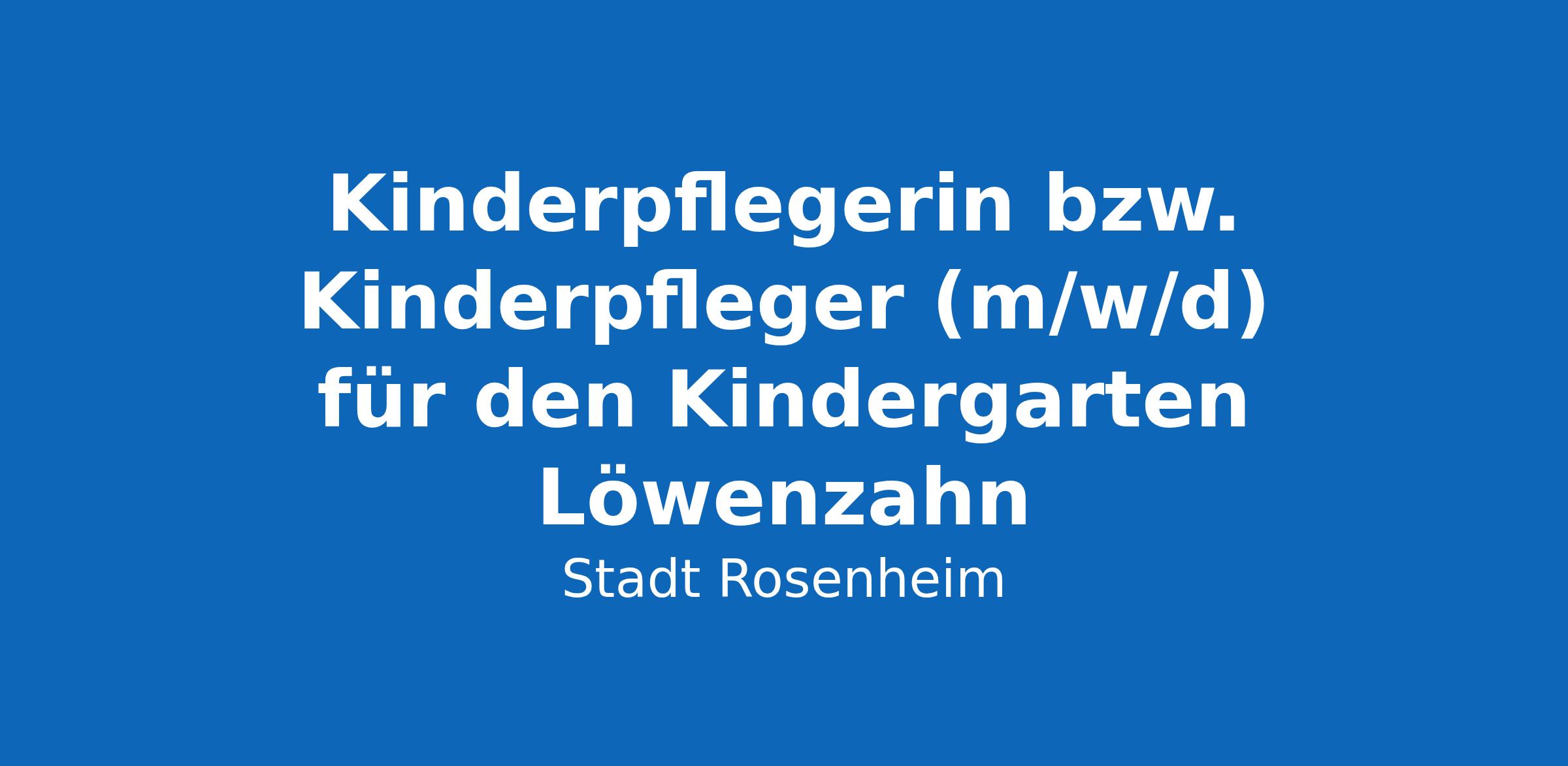 Die Stadt Rosenheim, Amt für frühkindliche Bildung, Erziehung und Betreuung, sucht zum nächstmöglichen Zeitpunkt eine/-n Kinderpflegerin bzw. Kinderpfleger (m/w/d) für den Kindergarten Löwenzahn, möglichst in Vollzeit.