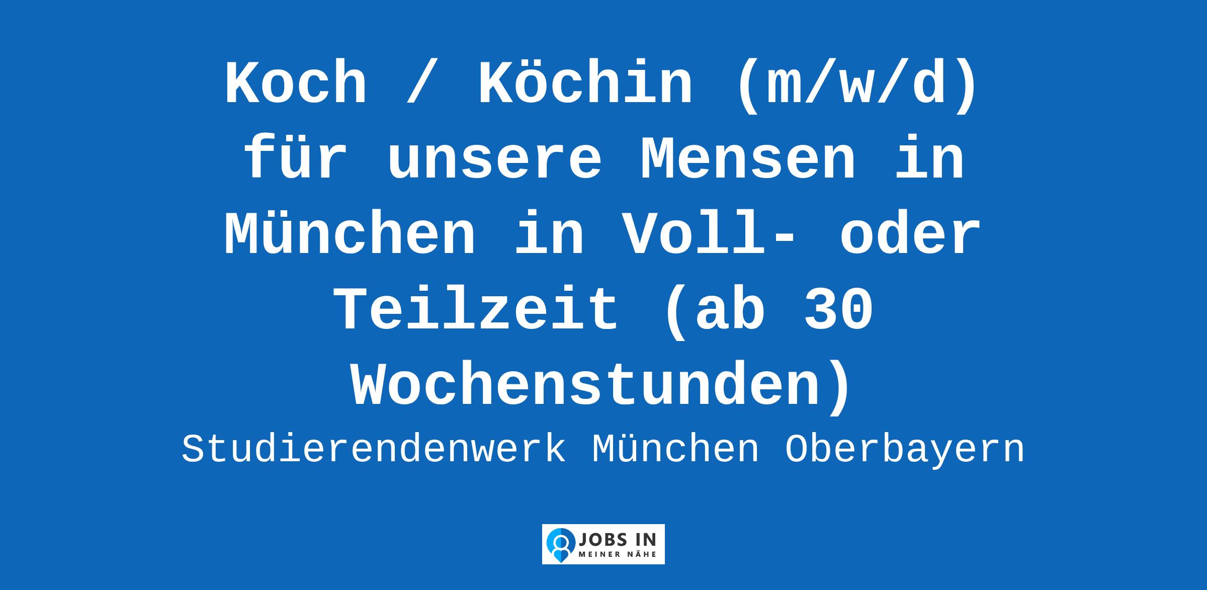 Wir besetzen zum nächstmöglichen Zeitpunkt zur Verstärkung unseres Teams in München mehrere Positionen als Koch / Köchin (m/w/d) für unsere Mensen in München in Voll- oder Teilzeit (ab 30 Wochenstunden) Das Studierendenwerk München Oberbayern bietet soziale und wirtschaftliche Dienstleistungen fü... EDV;Detailgenauigkeit;Uhren herstellen;Flexibilität;Engagement;Speisekarte;Catering;Warenannahme;Lager;Kreatives Arbeiten;Detailgenauigkeit;Einrichtung;Deutsch;Bistro;Systemgastronomie Original Stellenanzeige auf StepStone.de – Jetzt Jobagent bei StepStone einrichten und Traumjob finden! https://bit.ly/2KOagYD Mehr Informationen zu Arbeitgebern, Gehaltsdaten und Karrieretipps finden Sie auf StepStone.de