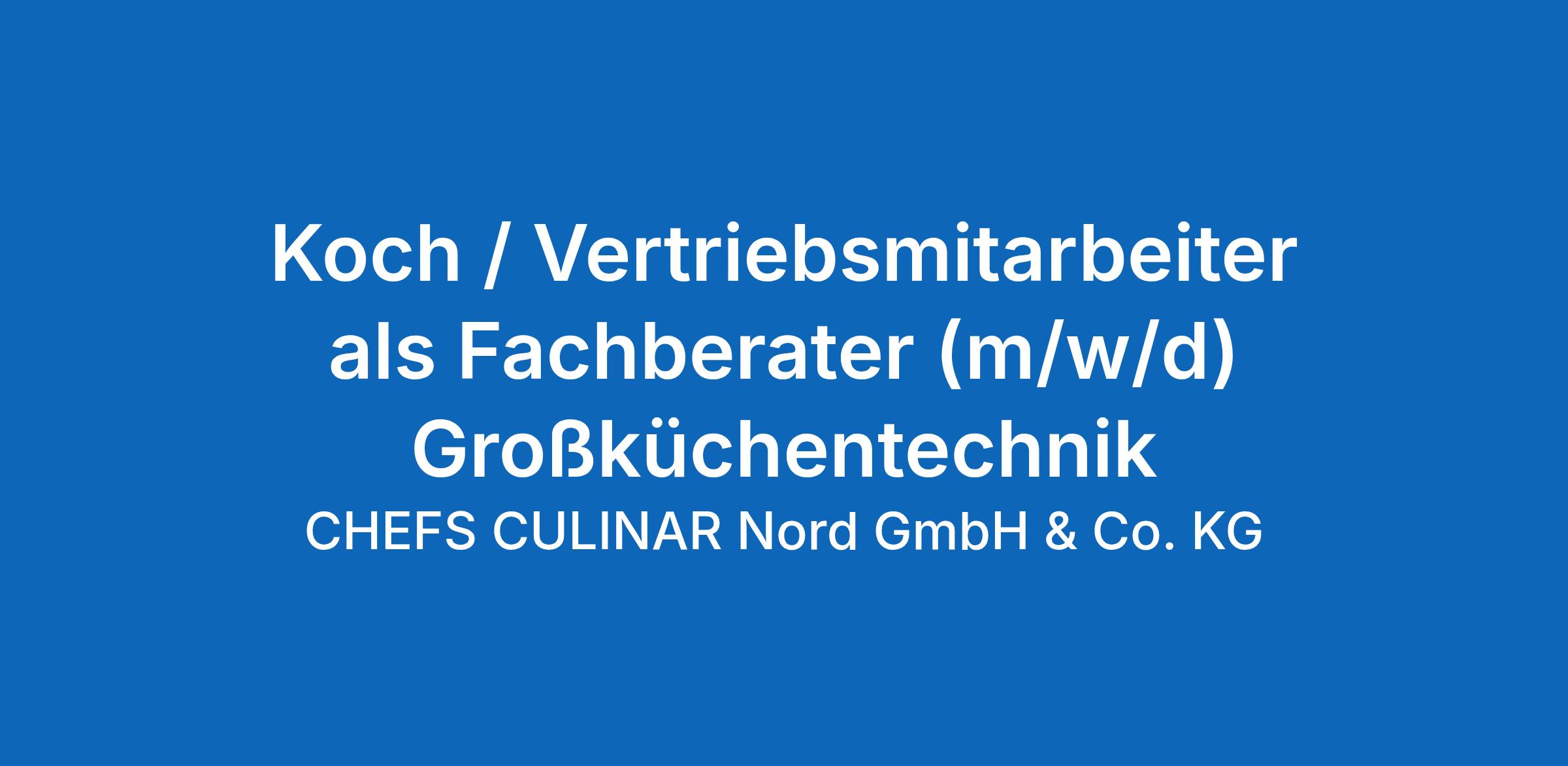 Koch/ Vertriebsmitarbeiter als Fachberater (m/w/d) Großküchentechnik