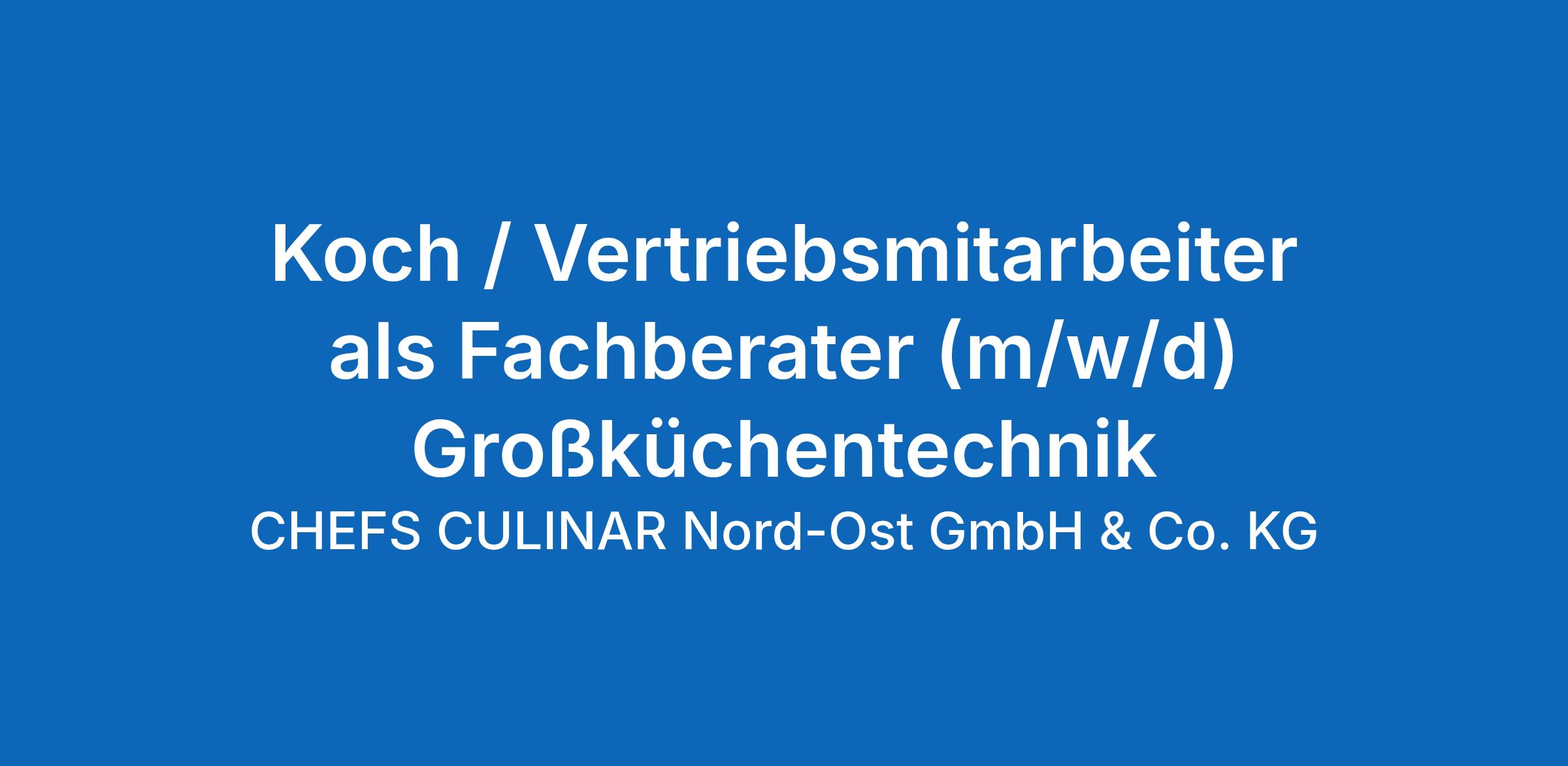 Koch/ Vertriebsmitarbeiter als Fachberater (m/w/d) Großküchentechnik