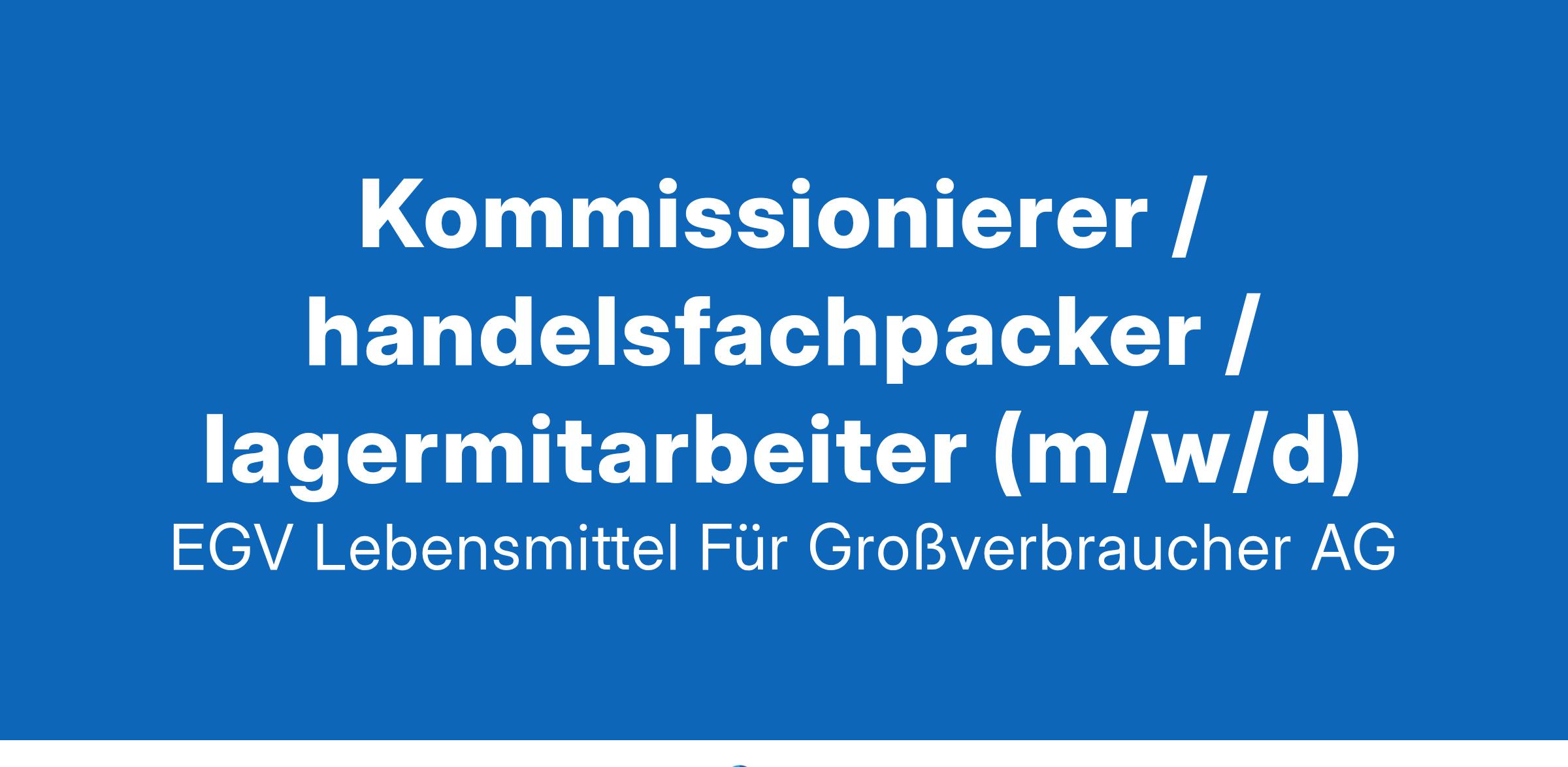 & Uuml;ber unsKOMM INS TEAM!Die mittelständisch geprägte EGV|AG beliefert Profi-Kunden aus der Gemeinschaftsverpflegung, im Gesundheits- und Sozialbereich, Bildung, Betriebsgastronomie sowie Hotellerie regional und überregional zuverlässig und schnell als Lebensmittel-Vollsortimenter mit hoher Frischekompetenz. Auf Augenhöhe handelt die EGV|AG freundlich, kompetent und persönlich und entwickelt unkompliziert Lösungen mit ihren Kunden.Die EGV|AG zählt heute mit sieben Standorten zu den führenden Lebensmittelgroßhändlern Deutschlands.Wir suchen zur Verstärkung für unseren Standort Eberswalde ab sofort in VollzeitKommissionierer / Handelsfachpacker / Lagermitarbeiter (m/w/d)Deine AufgabenDu kommissionierst Kundenaufträge unter Einsatz moderner FlurförderzeugeDu bereitest die Waren für den Versand vorDu führst allgemeine Lager- und Logistiktätigkeiten ausDein ProfilIdealerweise verfügst du über Erfahrung im Bereich Lagerlogistik oder KommissionierungQuereinsteiger sind herzlich willkommenEigenständiges, zuverlässiges und gewissenhaftes Arbeiten ist für dich selbstverständlichDu bist flexibel und arbeitest gerne in einem motivierten TeamWir bietenGeregelte ArbeitszeitenEinen sicheren Arbeitsplatz in einem führenden und modernen GroßhandelsunternehmenEine langfristige Perspektive und EntwicklungsmöglichkeitenUmfassende Einarbeitung und kontinuierliche Unterstützung durch erfahrene KollegenFlache Hierarchien und eine Kultur der offenen TürenHochwertige ArbeitskleidungWeihnachts- und Urlaubsgeld30 Tage Urlaubfrisches Obst, Kaffee und WasserRegelmäßige TeameventsJob Rad Leasing AngeboteKontaktinformationenWir freuen uns darauf, deine Bewerbung mit Angabe des frühestmöglichen Eintrittstermins und deiner Gehaltsvorstellung zu erhalten.Nutze dafür gerne unsere einfache Onlinebewerbung über den „ Jetzt Bewerben“ Button.EGV Lebensmittel für Großverbraucher AGHerr Thomas DoeringErnst-Abbe-Straße 216225 EberswaldeInformationen zur Datenverarbeitung