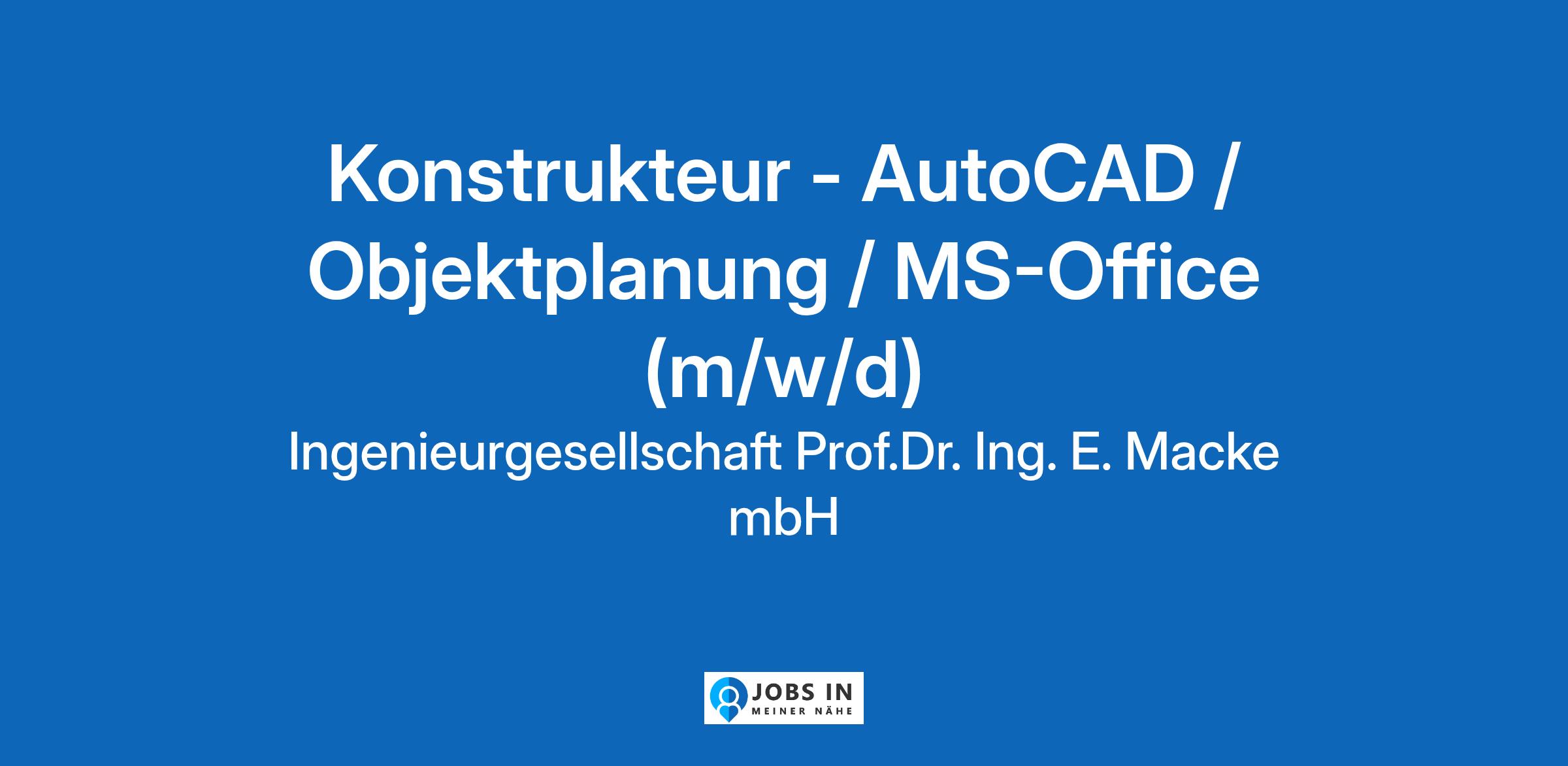 Die Ingenieurgesellschaft Prof. Dr.-Ing. E. Macke mbH ist zum Ende des Jahres 1994 aus dem 1982 gegründeten Ingenieurbüro Dr.-Ing. Eugen Macke hervorgegangen. Unser Leistungsspektrum umfasst Ingenieurtätigkeiten auf den Gebieten Verkehrsanlagen, Wasser, Abwasser, Infrastruktur und Umwelttechnik.... Workwise Sorgfalt;In sicherer Weise;Projektierung;Planung;AutoCAD;CAD-Zeichnungen;Deutsch;Entwicklung Original Stellenanzeige auf StepStone.de – Jetzt Jobagent bei StepStone einrichten und Traumjob finden! https://bit.ly/2KOagYD Mehr Informationen zu Arbeitgebern, Gehaltsdaten und Karrieretipps finden Sie auf StepStone.de