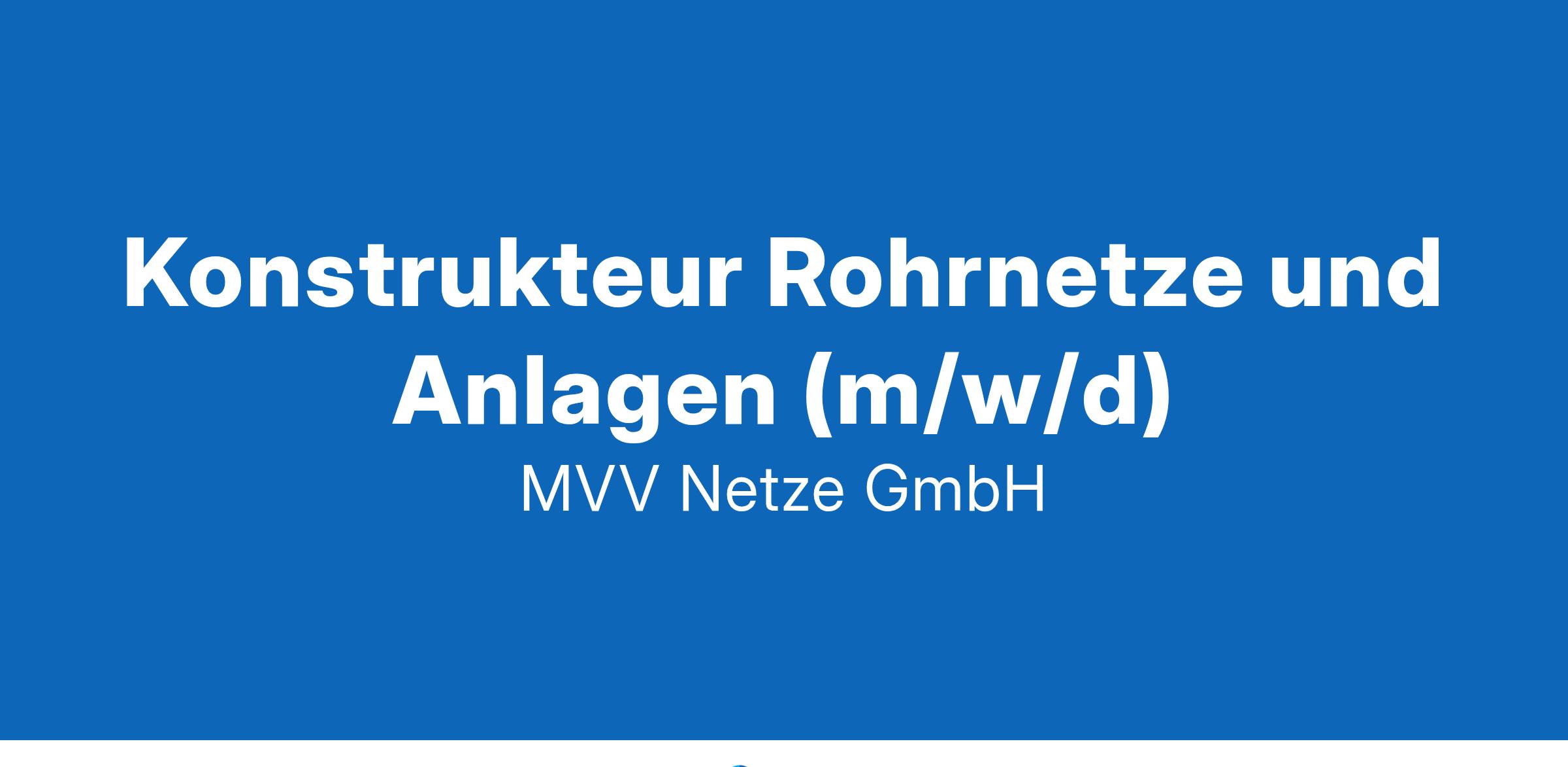Begeistern auch Sie sich für eine Aufgabe mit Zukunft in der MVV Netze GmbH. Unser Team Fernwärme sucht Sie am Standort Mannheim alsKonstrukteur Rohrnetze und Anlagen (m/w/d)Arbeitszeit: Vollzeit | Beginn: ab sofortDas erwartet Sie bei uns: