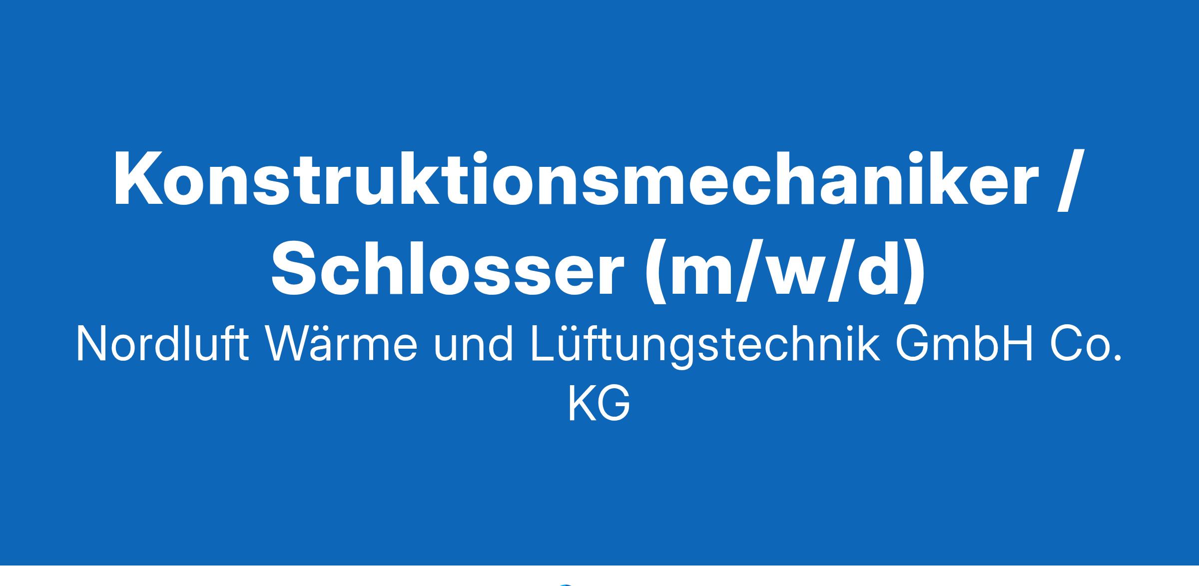 Konstruktionsmechaniker / Schlosser (m/w/d) Zur Verstärkung unseres Teams suchen wir einen KONSTRUKTIONSMECHANIKER / SCHLOSSER (m/w/d) DEINE AUFGABEN: Gerätefertigung in der Endmontage Blechbearbeitung an modernen CNC-Maschinen Selbstständige Ausführung der Arbeiten anhand technischer Unterlagen/technischer Zeichnungen Bedienung Abkantpresse und Blechschere DEIN PROFIL: Bevorzugt abgeschlossene Berufsausbildung im Metallbereich Berufserfahrungen in der Branche wären von Vorteil Eigeninitiative, Selbstständigkeit sowie eigenverantwortliches, strukturiertes Arbeiten Zuverlässigkeit, Leistungsbereitschaft und Flexibilität WIR BIETEN: Selbstständige, interessante und eigenverantwortliche Tätigkeiten Ein Dauerarbeitsverhältnis Einen sicheren Arbeitsplatz in einem inhabergeführten Unternehmen mit einem engagierten und kollegialen Team Vereinbarkeit von Familie & Beruf Engagierten Berufsanfängern geben wir gerne eine Chance 30 Tage Jahresurlaub Sachbezugskarte (50 Euro monatlich) Betriebliche Altersvorsorge Vermögenswirksame Leistungen Firmenfitness JobRad gemeinsame Events wie Abteilungsausflüge, Sommerfeste und Weihnachtsfeiern WIR FREUEN UNS AUF DEINE BEWERBUNG! Sende Deine Bewerbung per E-Mail an Kerstin Thomann: bewerbung@nordluft.com oder über unsere Website: www.nordluft.com/jobs. ERFAHRE MEHR ÜBER UNS Wärme- und Lüftungstechnik GmbH & Co. KG Robert-Bosch-Str. 5 · 49393 Lohne · bewerbung@nordluft.com