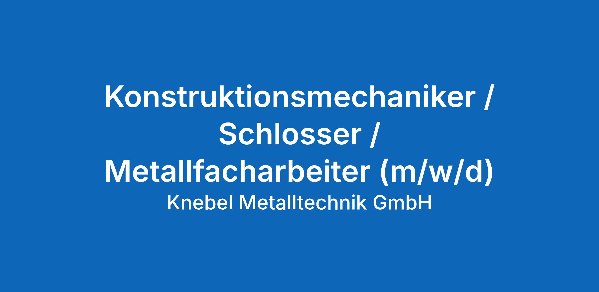 Die Knebel Metalltechnik GmbH mit Sitz in Frankfurt am Main ist ein etablierter und zuverlässiger Partner im Bereich Metallverarbeitung. Wir stehen für hochwertige Blechbearbeitung, präzise Fertigung und individuelle Lösungen für unsere Kunden. Als familiengeführtes Unternehmen legen wir großen Wert auf Qualität, Teamgeist und langfristige Zusammenarbeit. Zur Verstärkung unseres Teams suchen wir zum nächstmöglichen Zeitpunkt einen engagierten Konstruktionsmechaniker / Schlosser / Metallbauer (m/w/d).