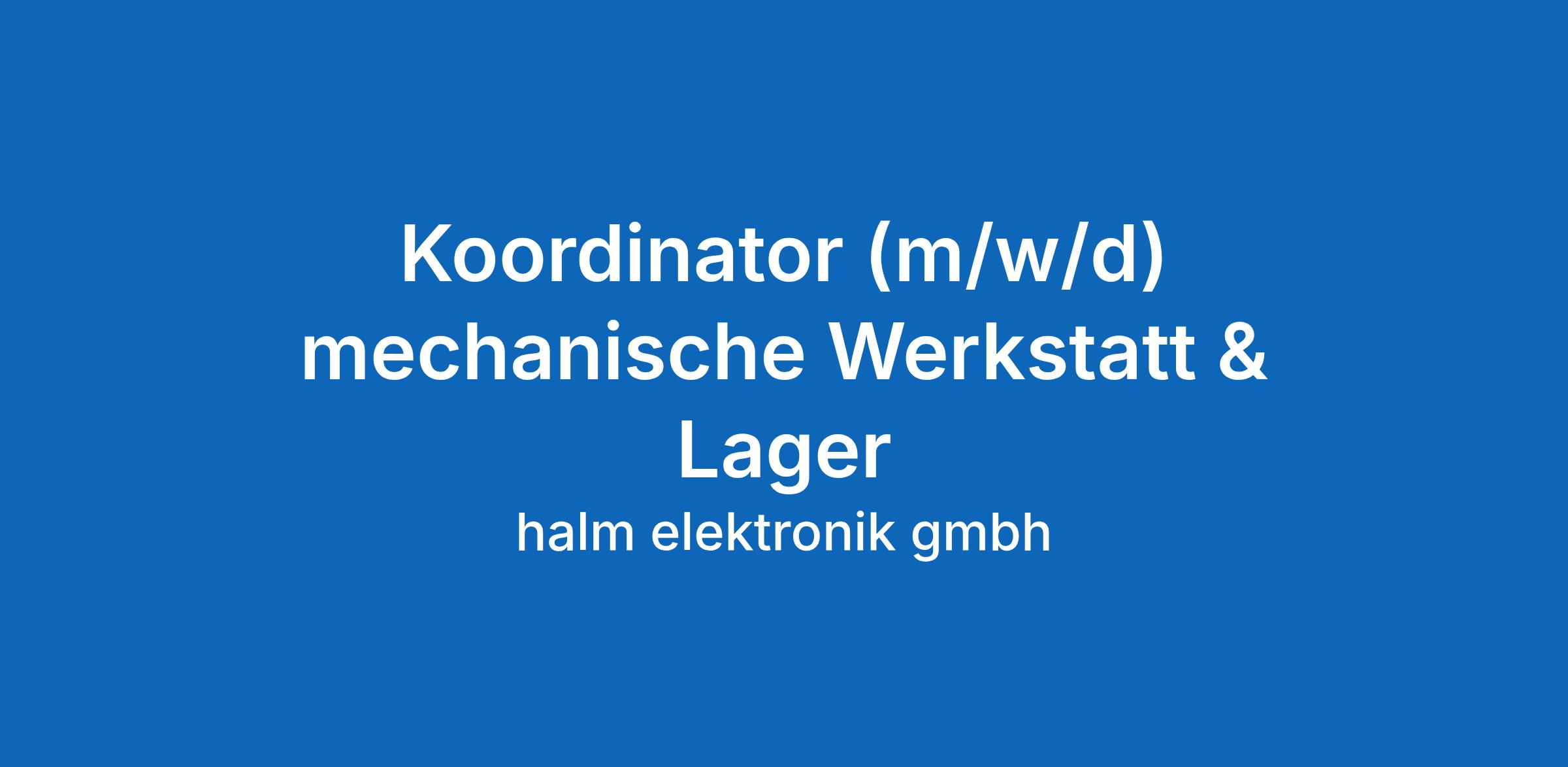 Koordinator (m/w/d) mechanische Werkstatt & Lager