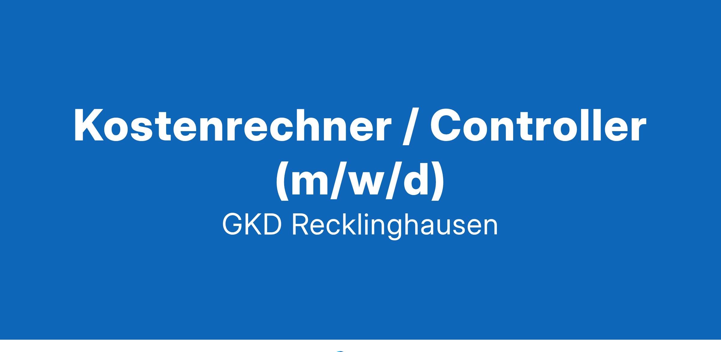 Kostenrechner/Controller (m/w/d)Ort: Recklinghausen/ Home Office MöglichkeitenArbeitszeit: Vollzeit/TeilzeitIhre AufgabenSie sind verantwortlich für die Kosten- und Leistungsrechnung der GKD Recklinghausen.