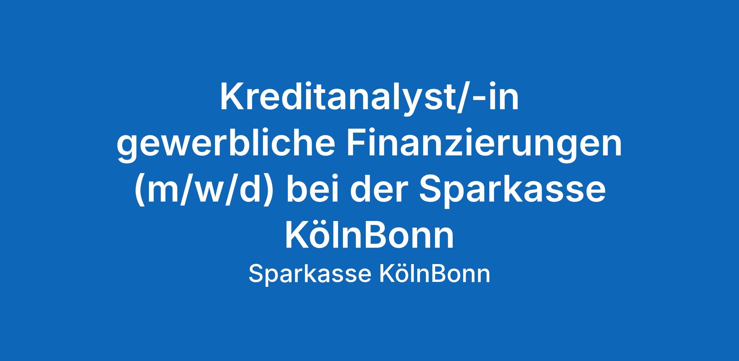 Werde Kreditanalyst/-in gewerbliche und private Ratings (m/w/d) bei der Sparkasse KölnBonn – am Standort Köln.
