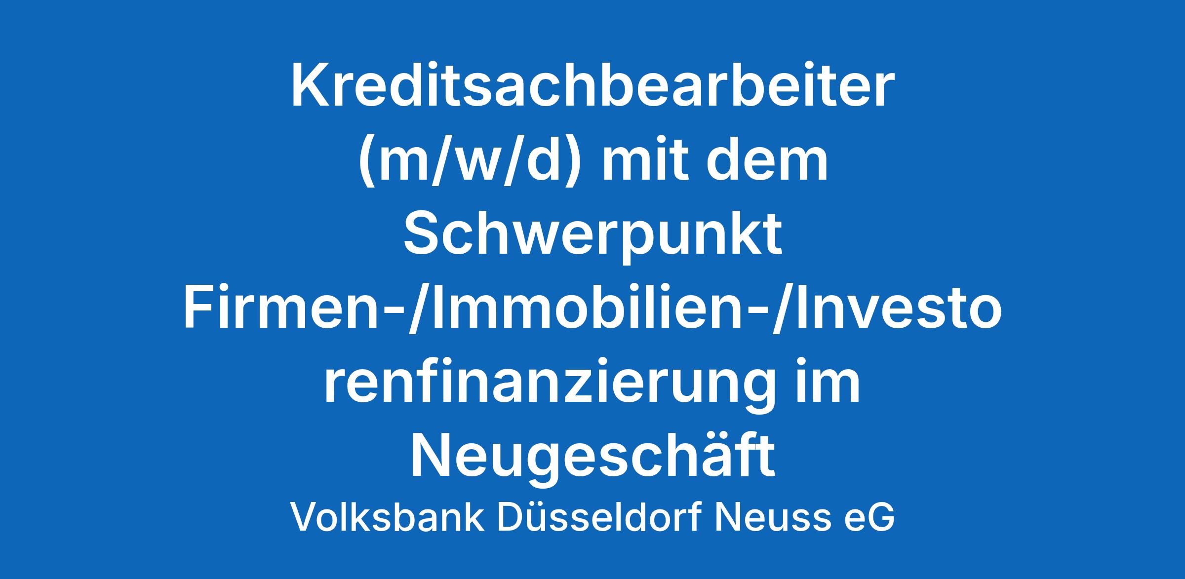 Kreditsachbearbeiter (m/w/d) mit dem Schwerpunkt Firmen-/Immobilien-/Investorenfinanzierung im Neugeschäft